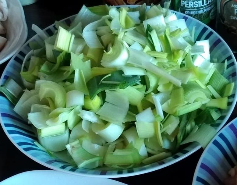- Laver les poireaux. Couper les racines ainsi que le bout des feuilles vertes. Les tailler ensuite en rondelles.
