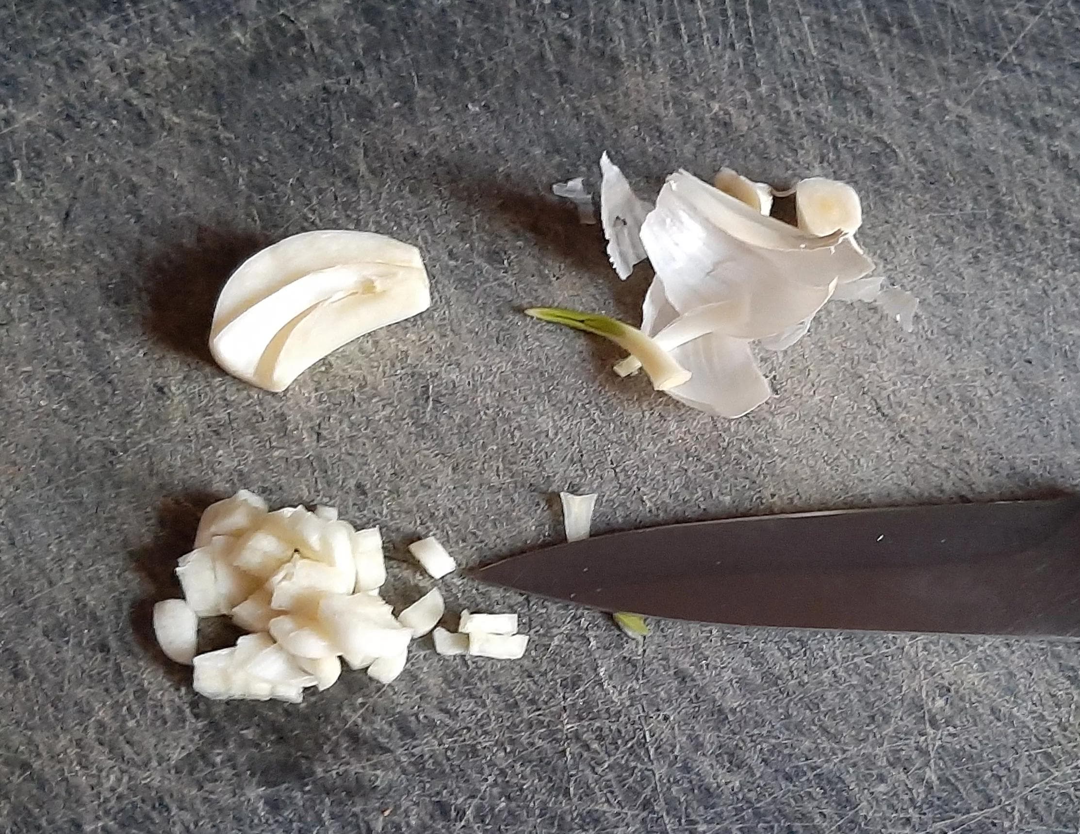 - Ensuite, éplucher les gousses d'ail et enlever le germe car il est indigeste. Les couper en petits morceaux après.