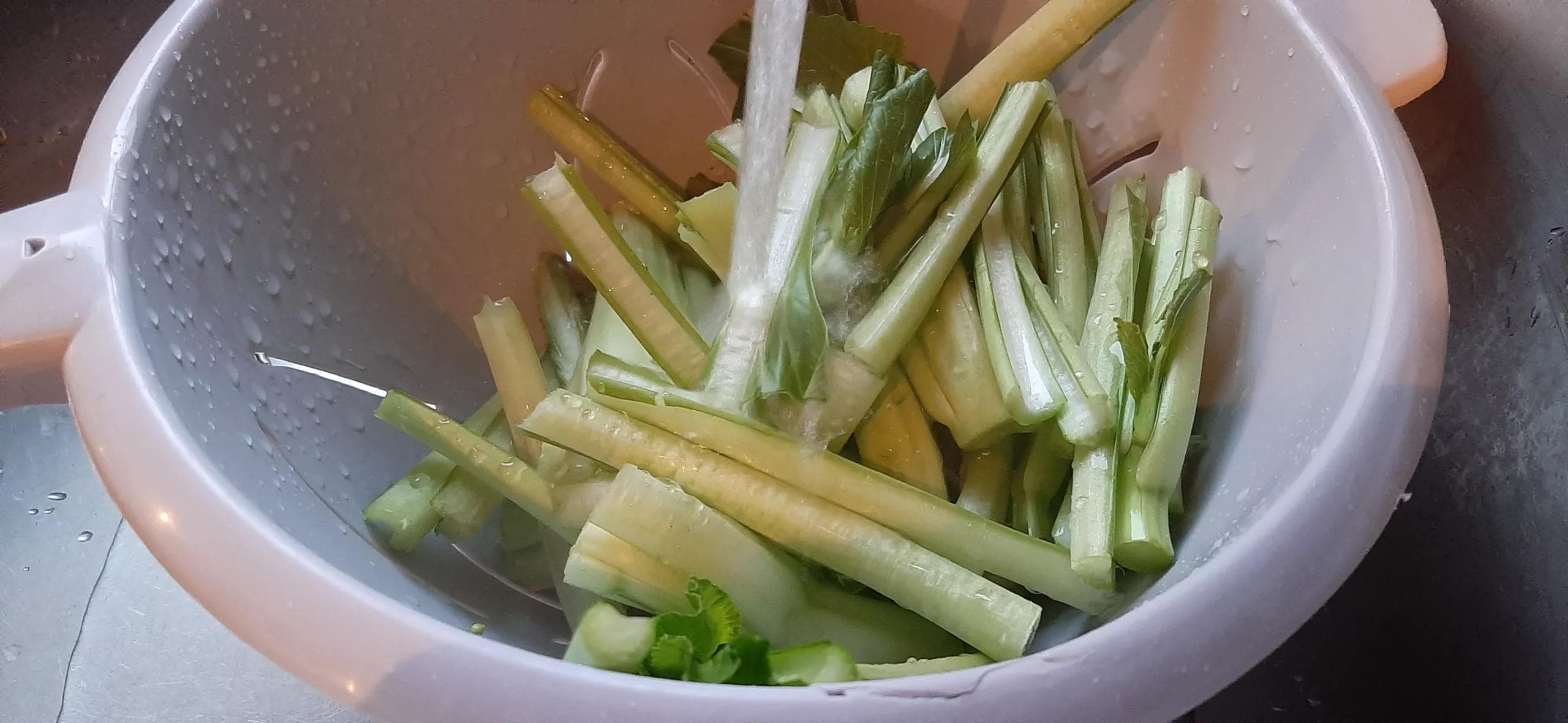 - Rincer à l'eau froide les bâtonnets de choy sum.