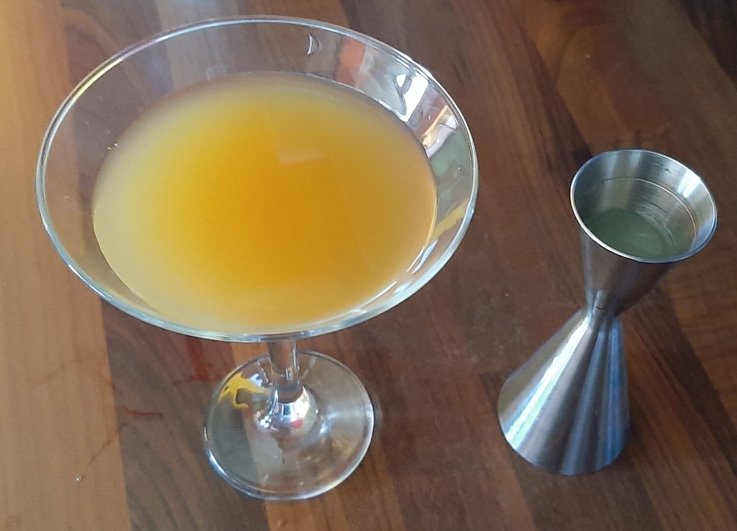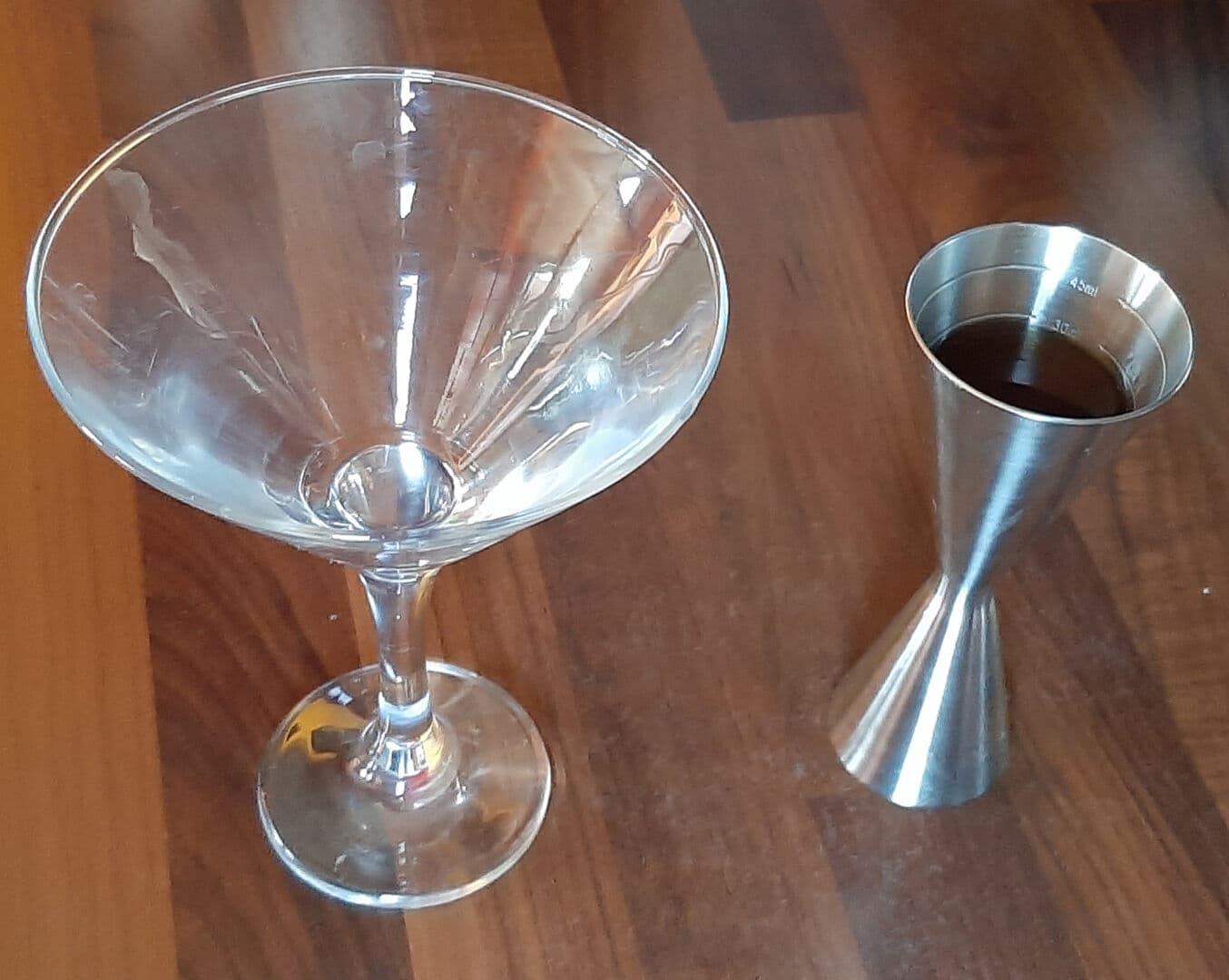 - Doser le rhum ambré avec un verre doseur et le verser dans un verre à cocktail.