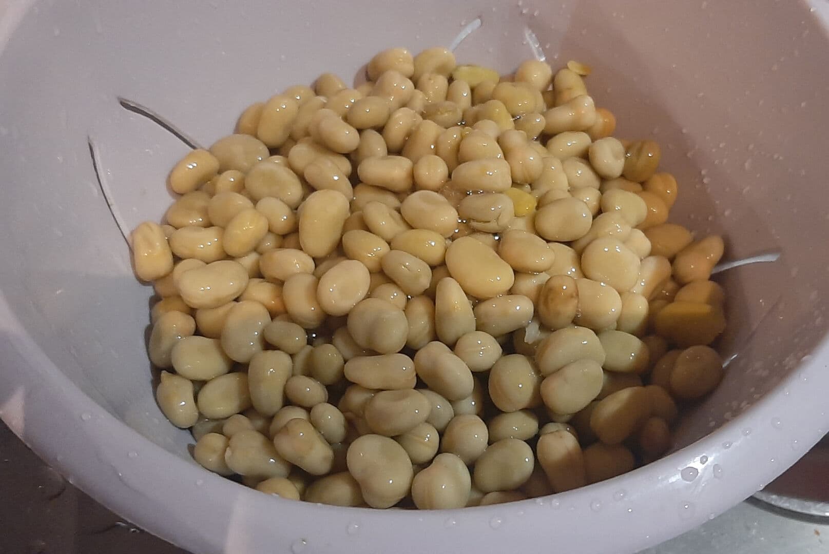 - Egoutter les fèves vertes bio dans une passoire et les rincer à l'eau froide