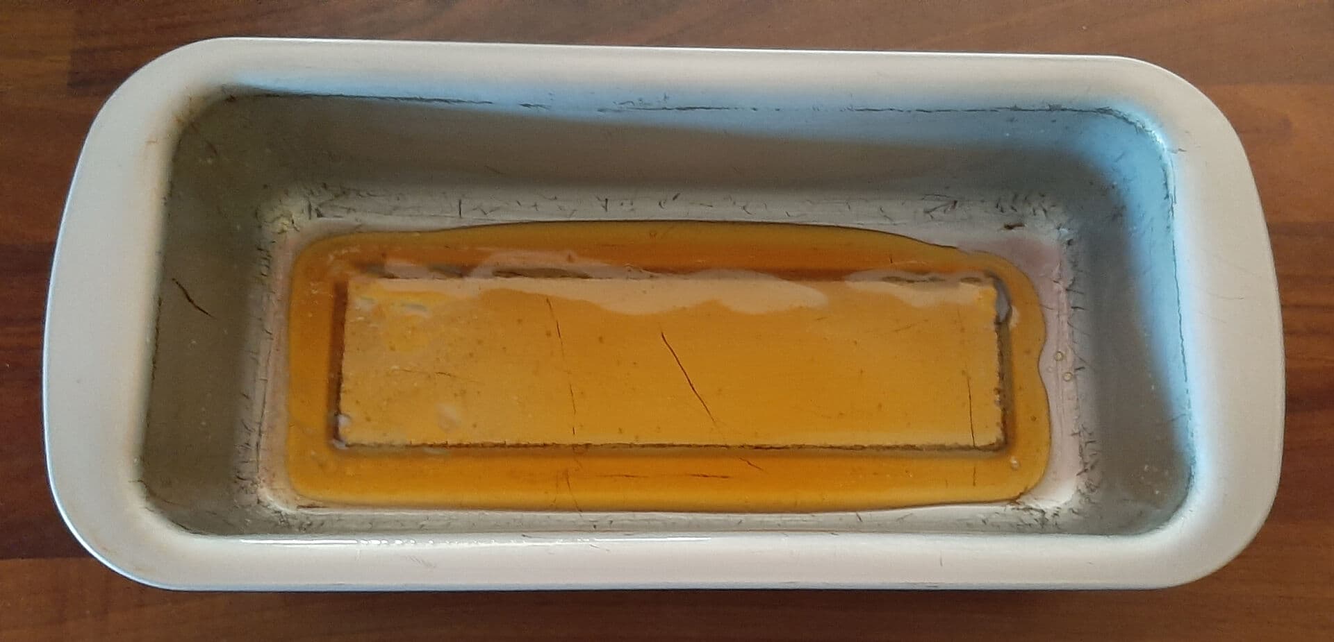 - Le sortir une fois que la lame du couteau ressorte sèche (important car si le flan antillais n’est pas suffisamment cuit il s’effondrera automatiquement lors du démoulage). Ne pas le démouler et mettre le moule une nuit au réfrigérateur.