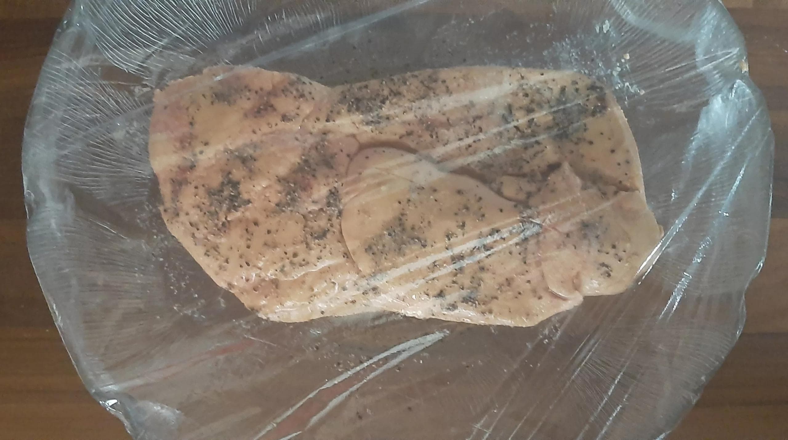 - Puis, sortir le foie assaisonné du réfrigérateur le lendemain et le mettre sur une feuille de papier sulfurisé.