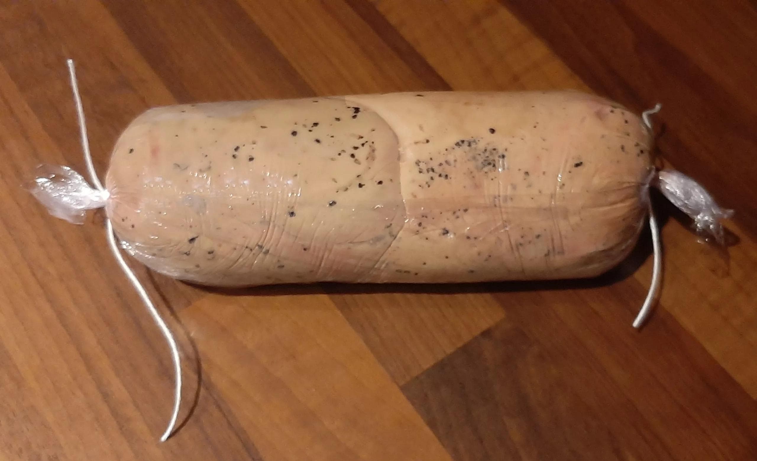 - Former une ballotine pour donner une belle forme à votre foie gras (adapter la taille en fonction de votre casserole). Chasser un maximum d'air en serrant sans forcer.