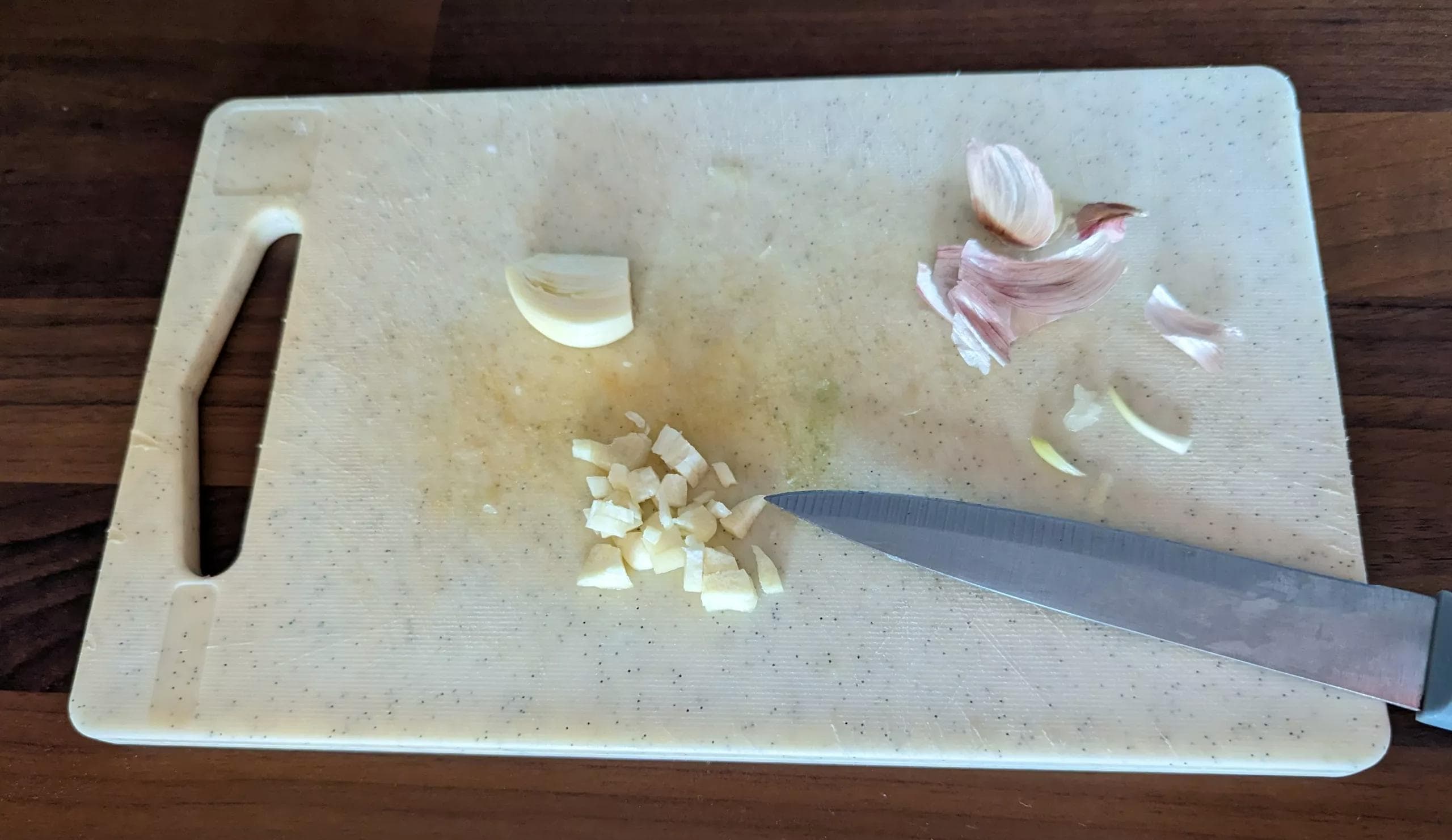 - Ensuite, éplucher la gousse d'ail et la couper en deux. Enlever le germe car il est indigeste et la couper en petits morceaux.