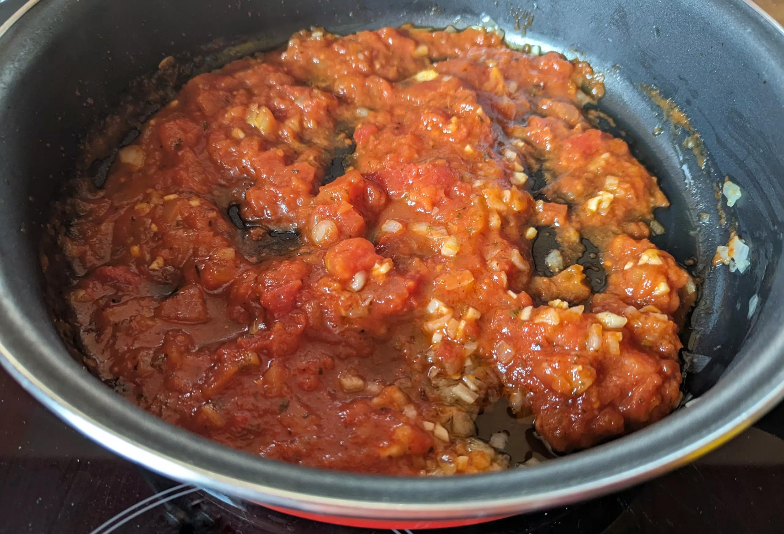 - Ensuite, rajouter la chair de tomates et mélanger le tout avec une spatule en bois.