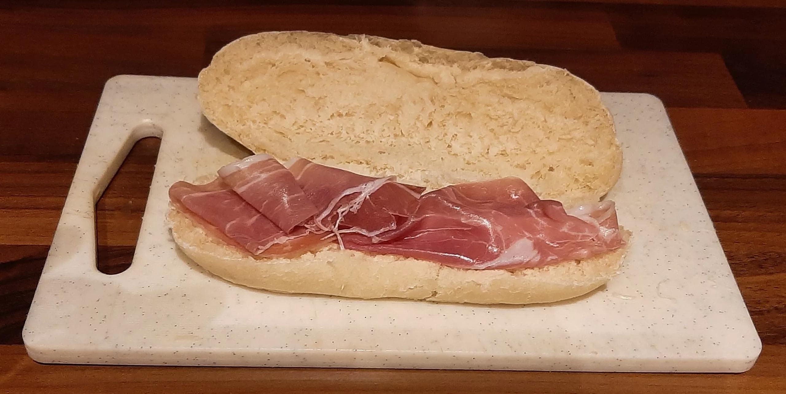 Panini avec jambon de Parme, mozzarella et fromage comté.