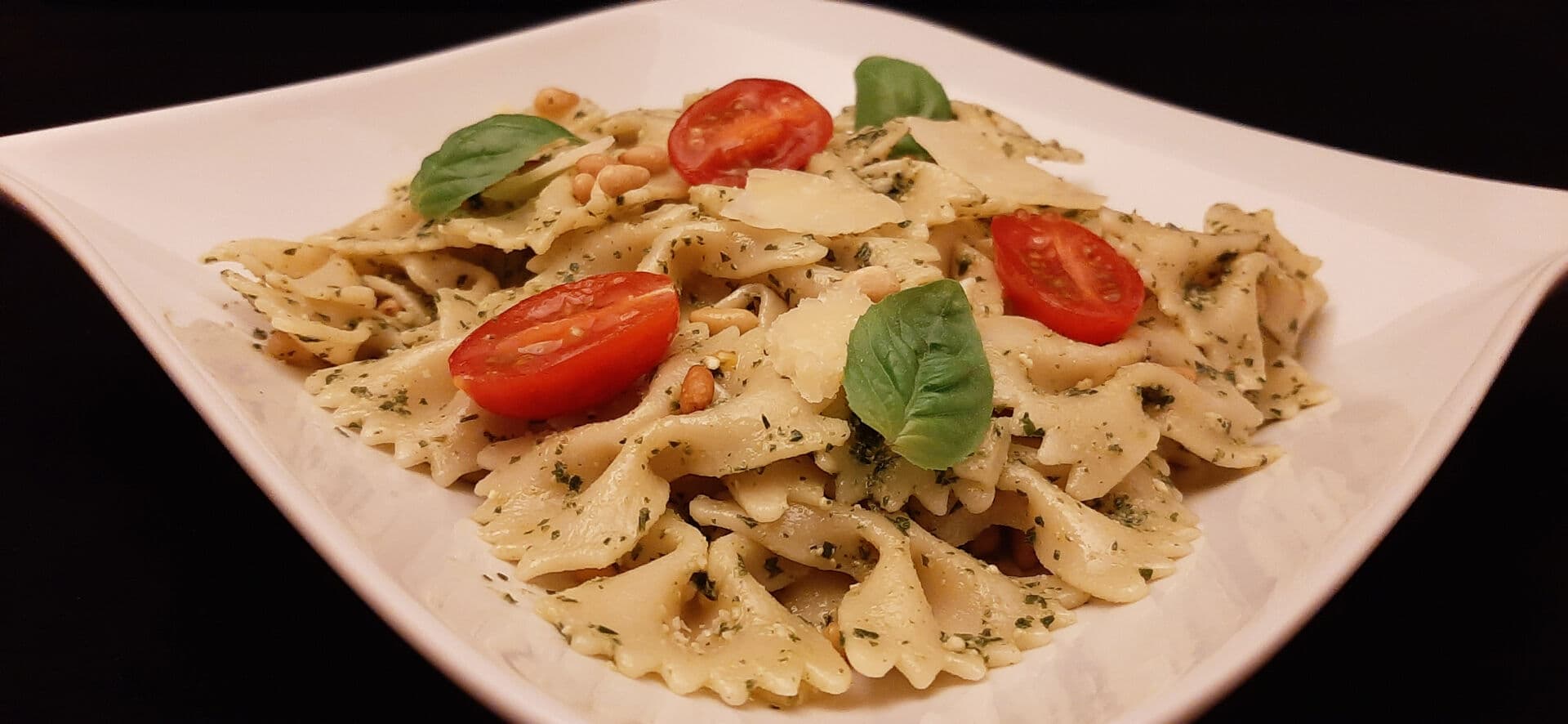Pâtes au pesto. Une recette de salade italienne gourmande