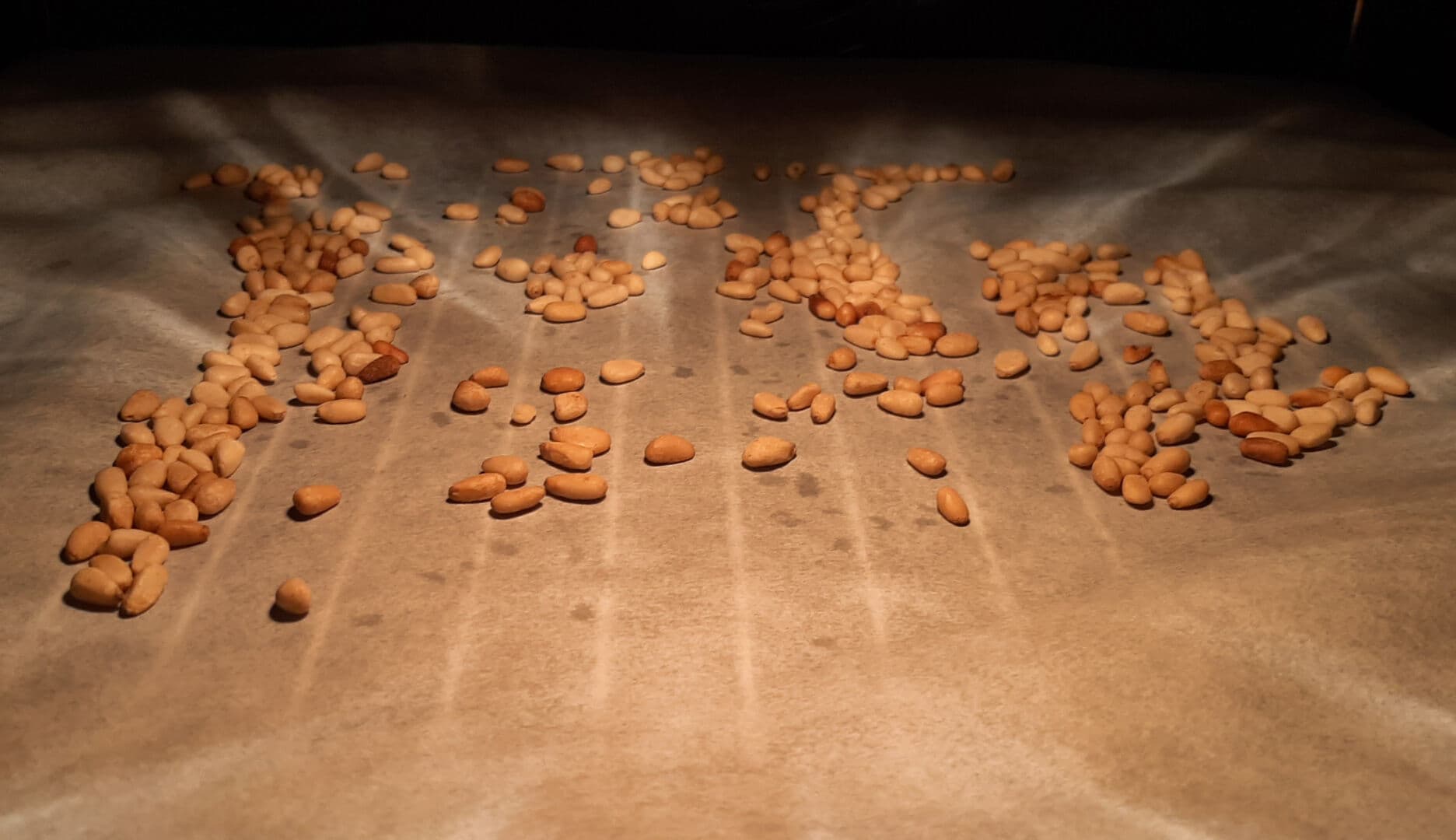- Torréfier les pignons de pin au four et les laisser refroidir.