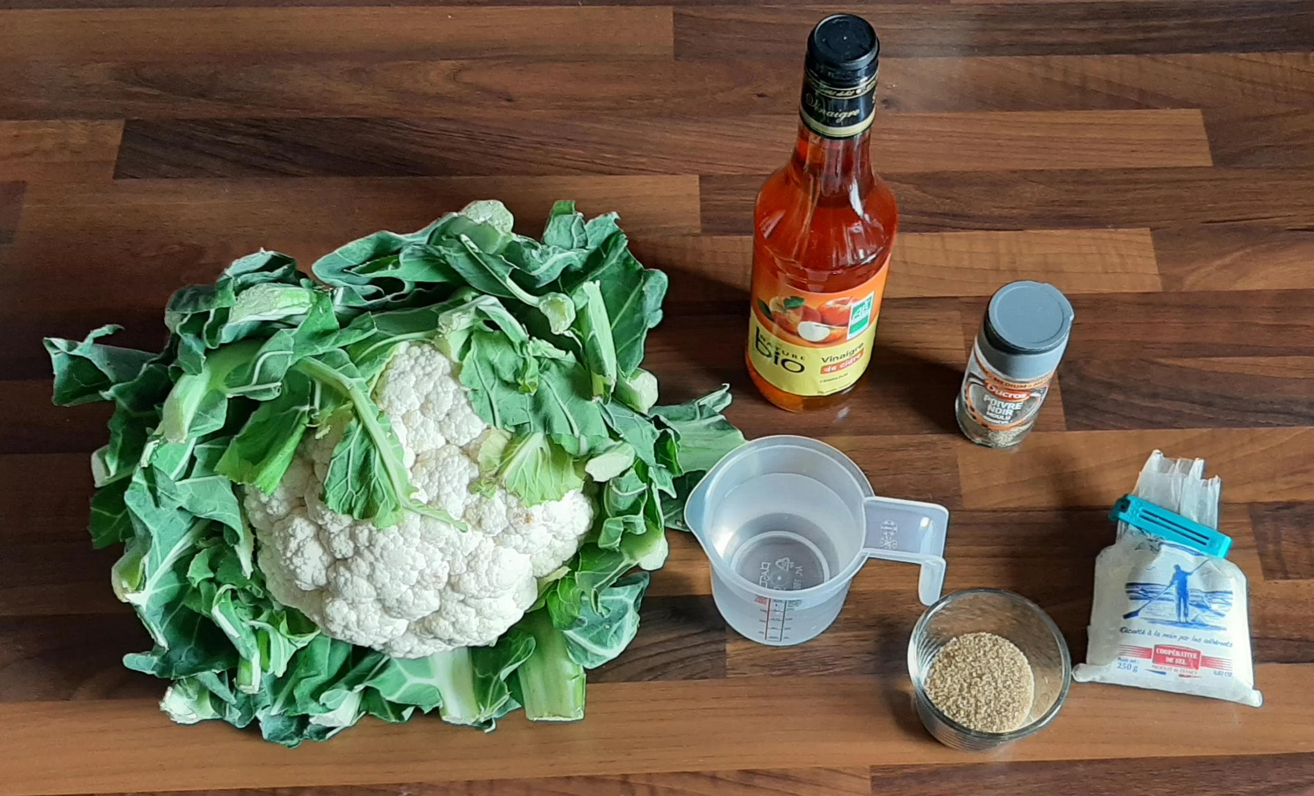 chou-fleur, choux, pickles, légume, healthy, cuisine, condiment, vinaigre de cidre, fleur de sel, végétarien