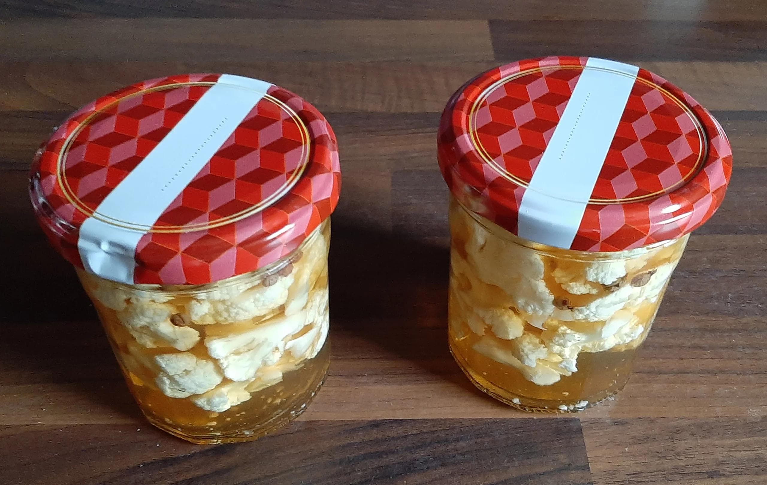 - Vos pickles de chou-fleur sont prêts. Laisser les deux à trois jours se reposer au réfrigérateur.