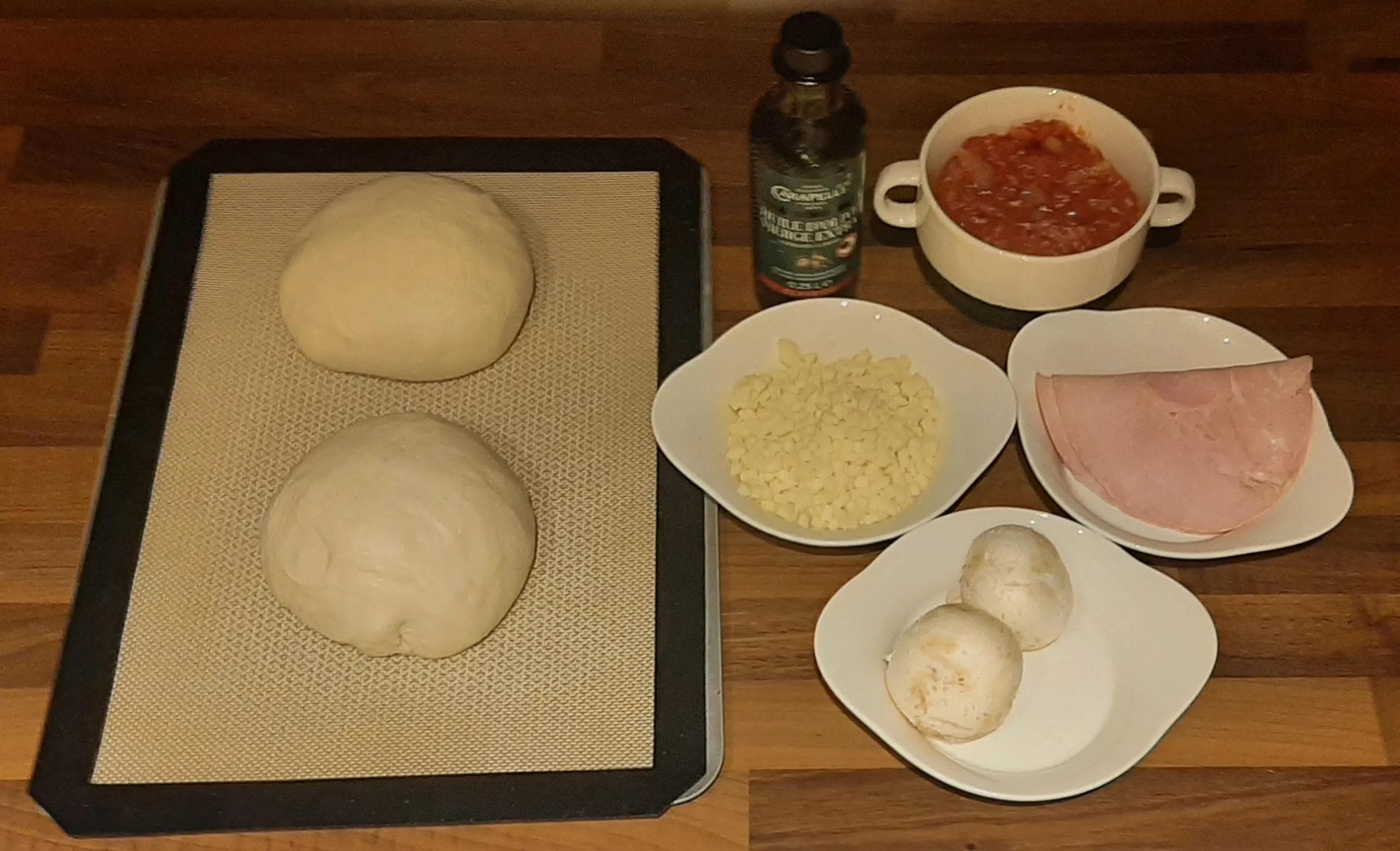 Voici ma recette de la pizza de la mama ! Avec du jambon, des champignons et de la mozza, elle est délicieuse. Pour une pizza encore plus gourmande, faire vous même la pâte et la sauce tomate.Un recette 100% maison pour surprendre vos invités !