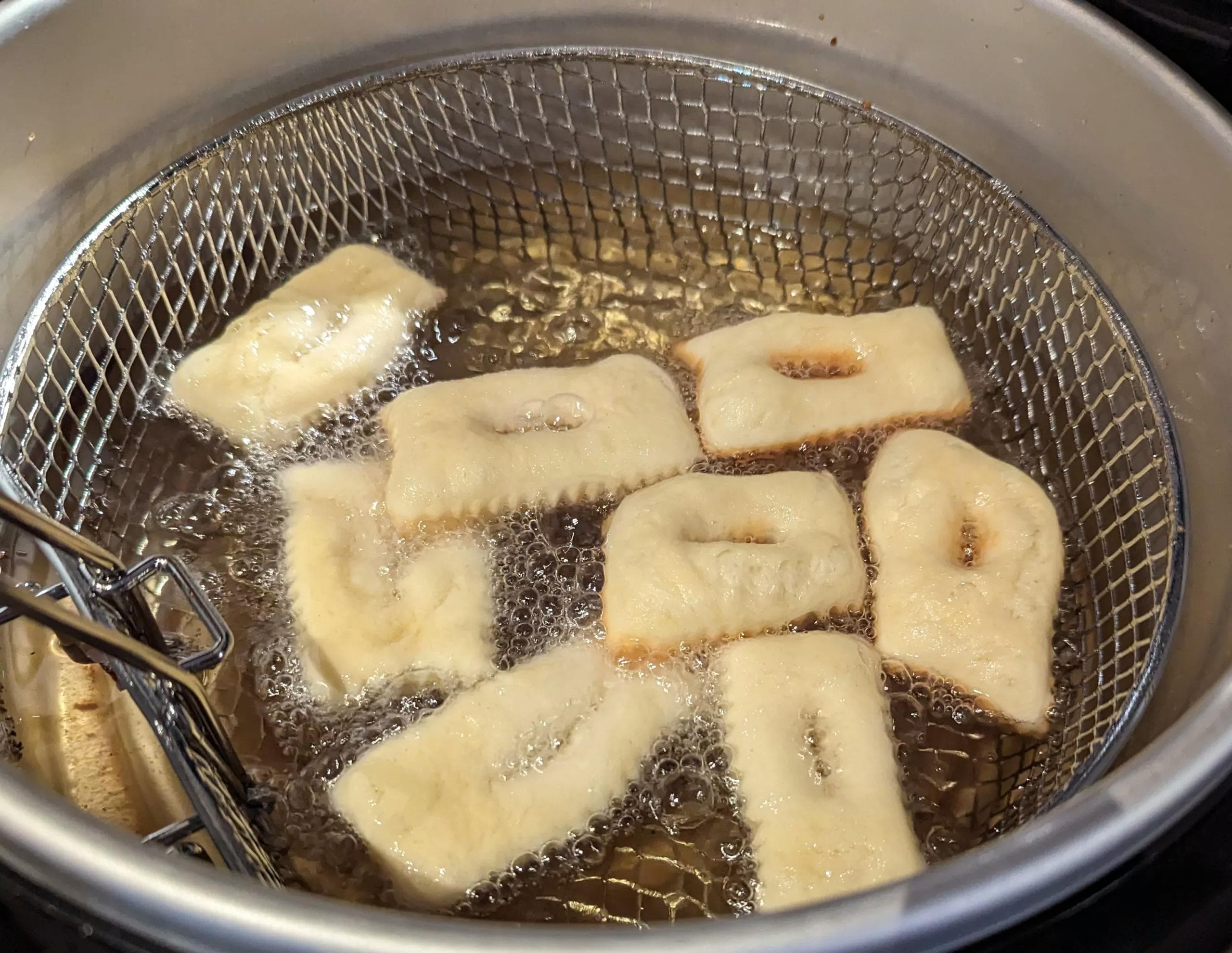 - Ensuite, déposer délicatement quelques morceaux de pâte dans la friteuse à 170°C.