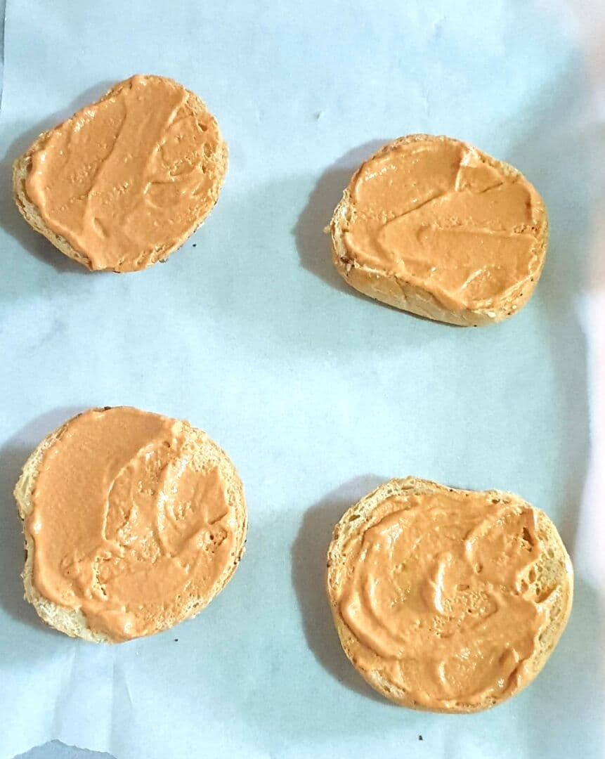 - Ajouter 1 cuillère à soupe de sauce bourguignonne sur chaque face et étaler.