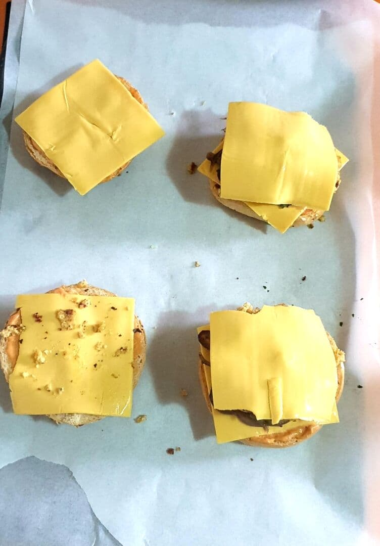 - Réserver et faire cuire les steaks végétaux au four (les former à l'aide d'un emporte-pièce rond) et cuire 5 à 10 min à 200°C.