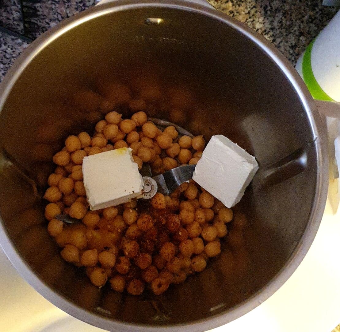 - Préparer le steak végétal : mettre les pois chiches dans un mixeur.