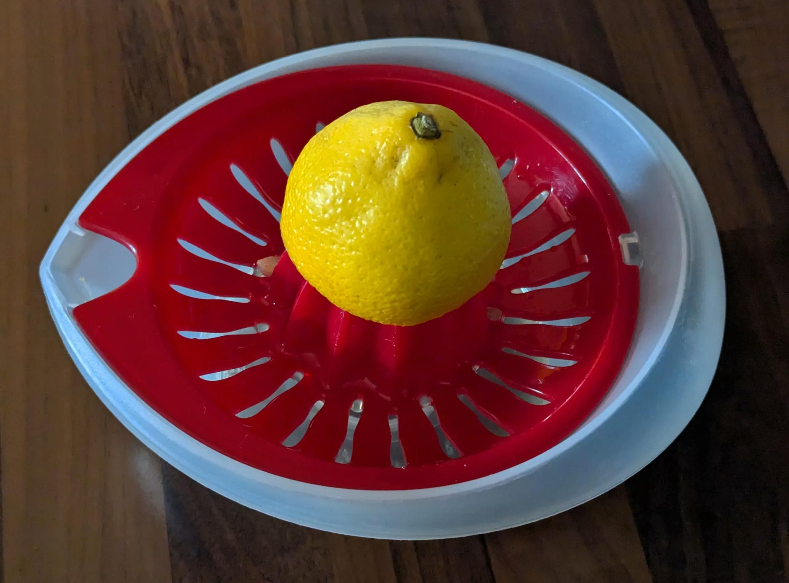 - Ensuite, presser un demi citron jaune avec un presse agrume.