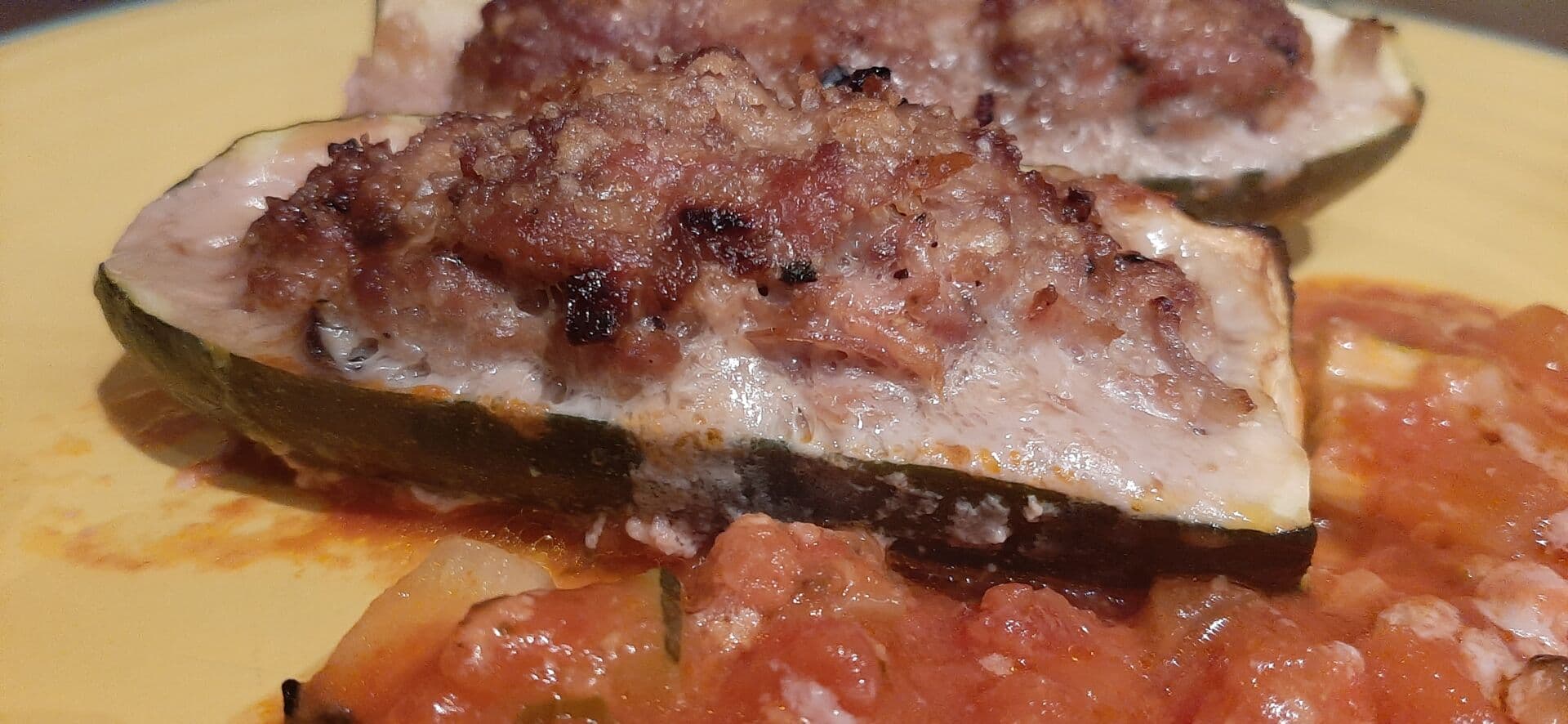 Courgettes farcies à l'échine de porc et mortadelle