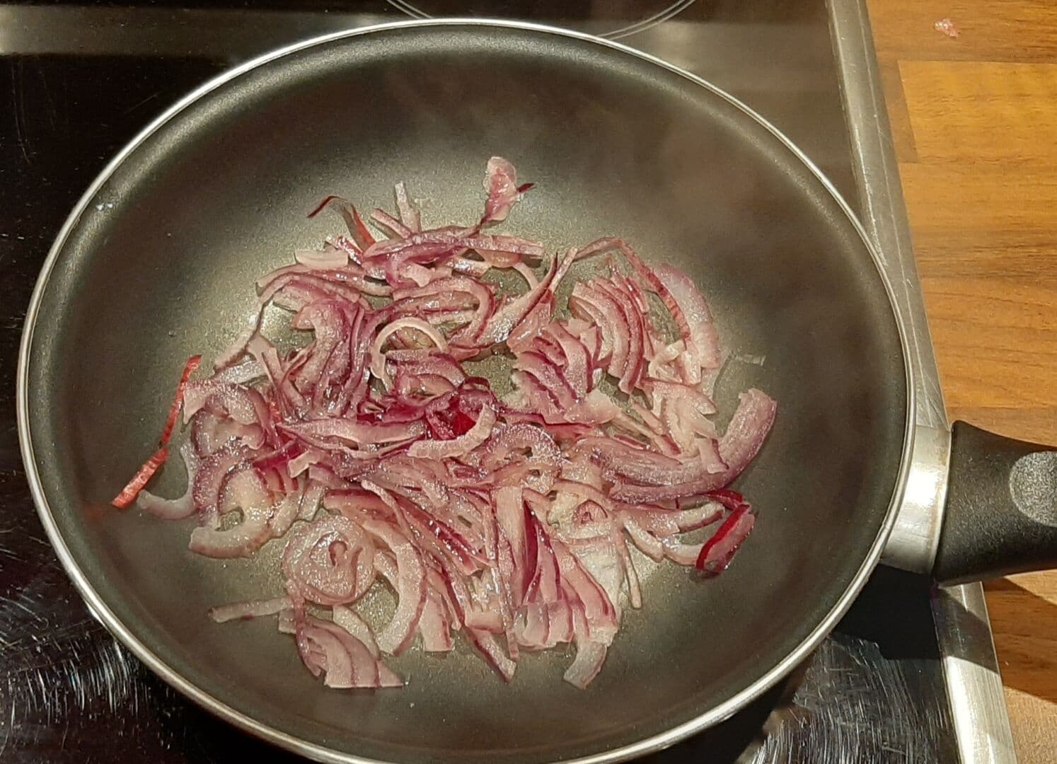 - Découper les oignons et les faire revenir dans une poêle avec de l'huile d'olive