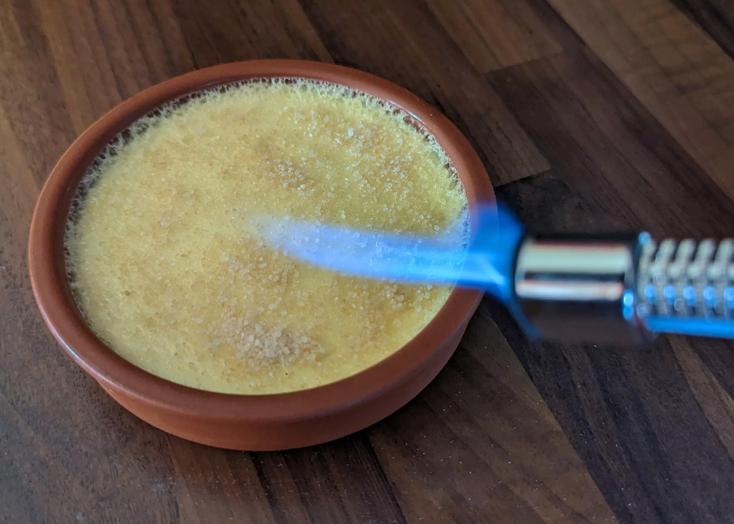 - Faire fondre ensuite le sucre avec un chalumeau de cuisine.