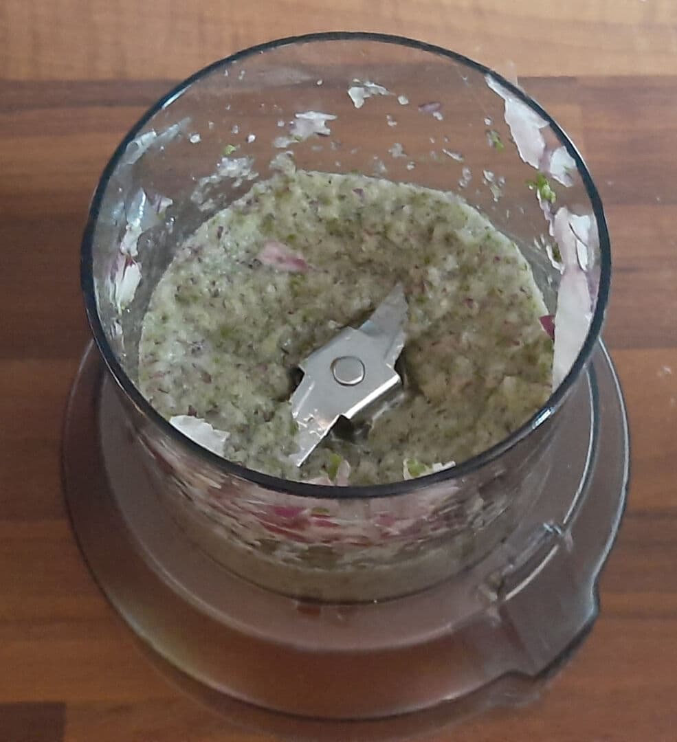 - Eplucher et couper grossièrement l'oignon. Le mixer finement avec le persil