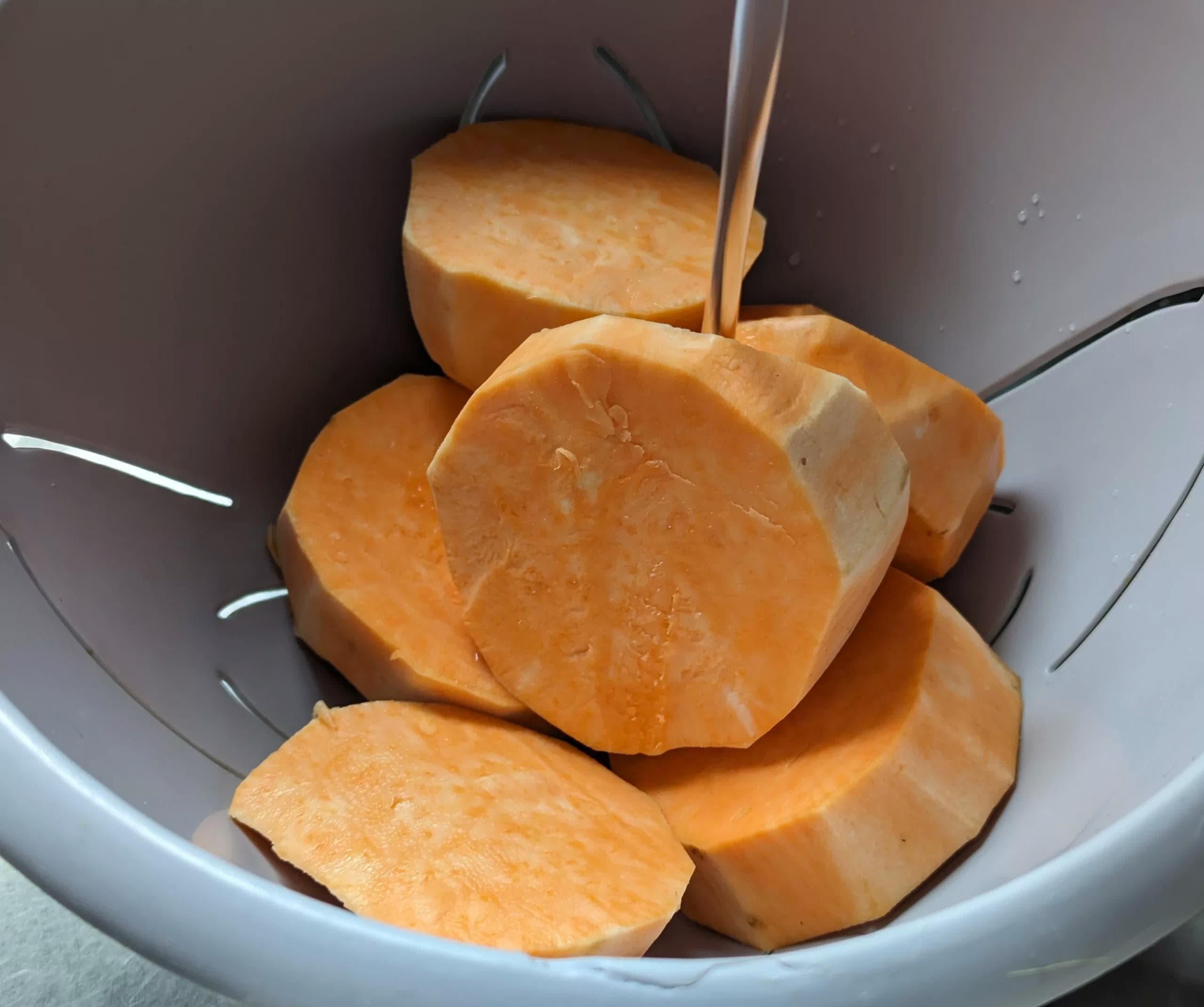 - Ensuite, les écraser à l'aide d'un presse légumes dans un saladier.