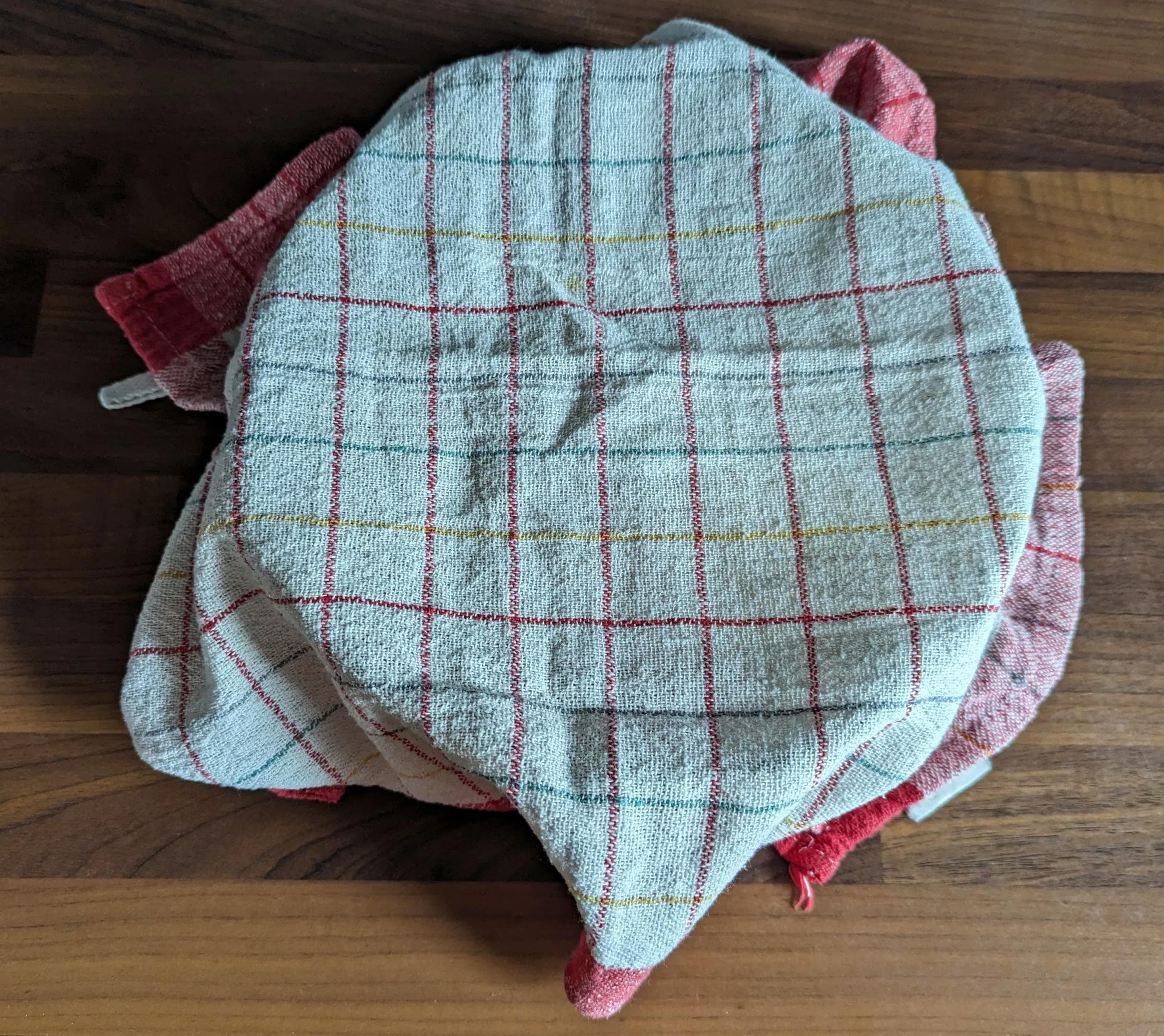 - Puis le couvrir d'un torchon de cuisine propre. Mettre le saladier dans le four éteint et laisser pousser pendant 2 heures.