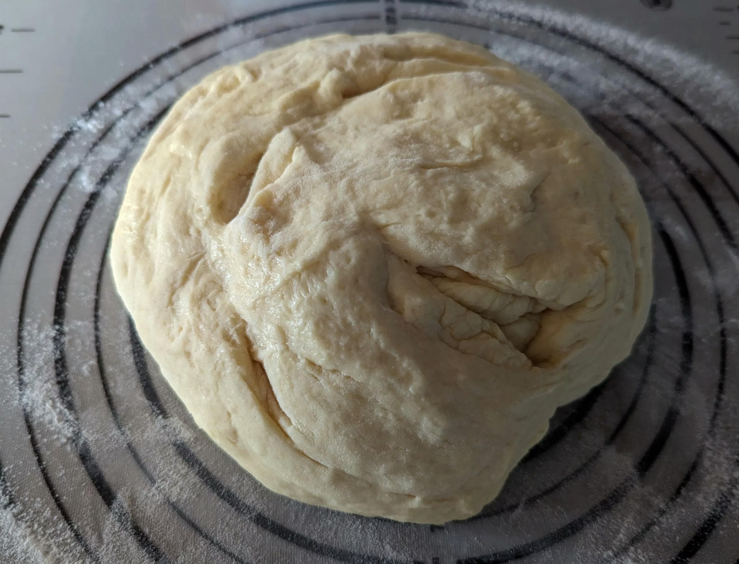 - Ensuite, mélanger le tout avec la feuille pendant 3 minutes. Rajouter un peu de farine si la pâte colle un peu au doigts.