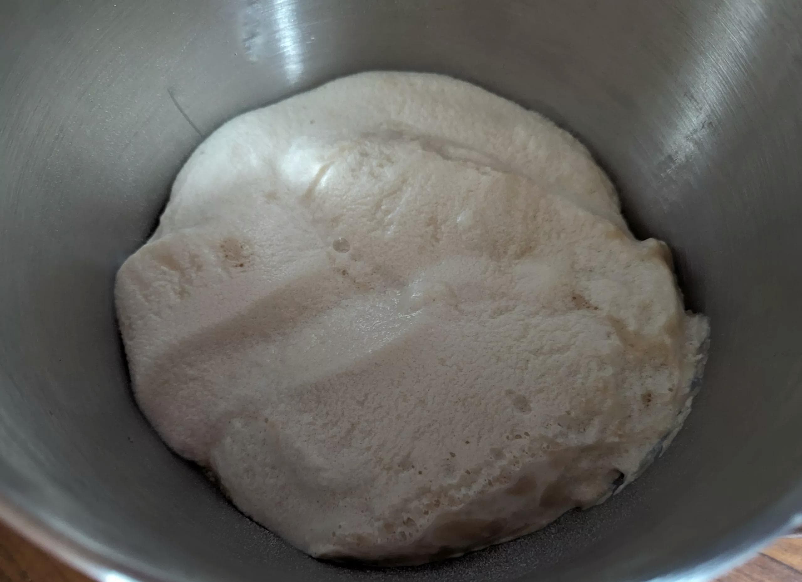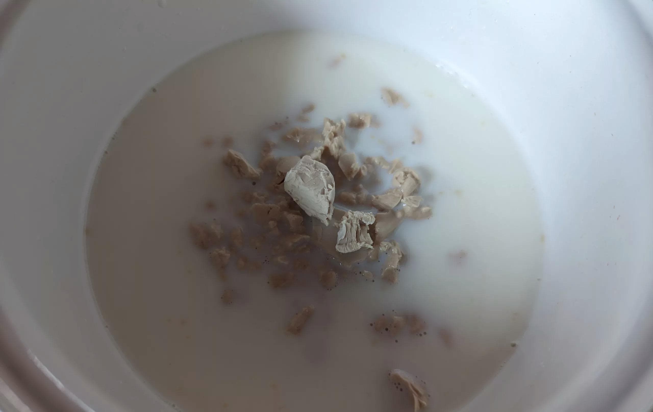 - Ensuite, rajouter la levure de boulanger émiettée.