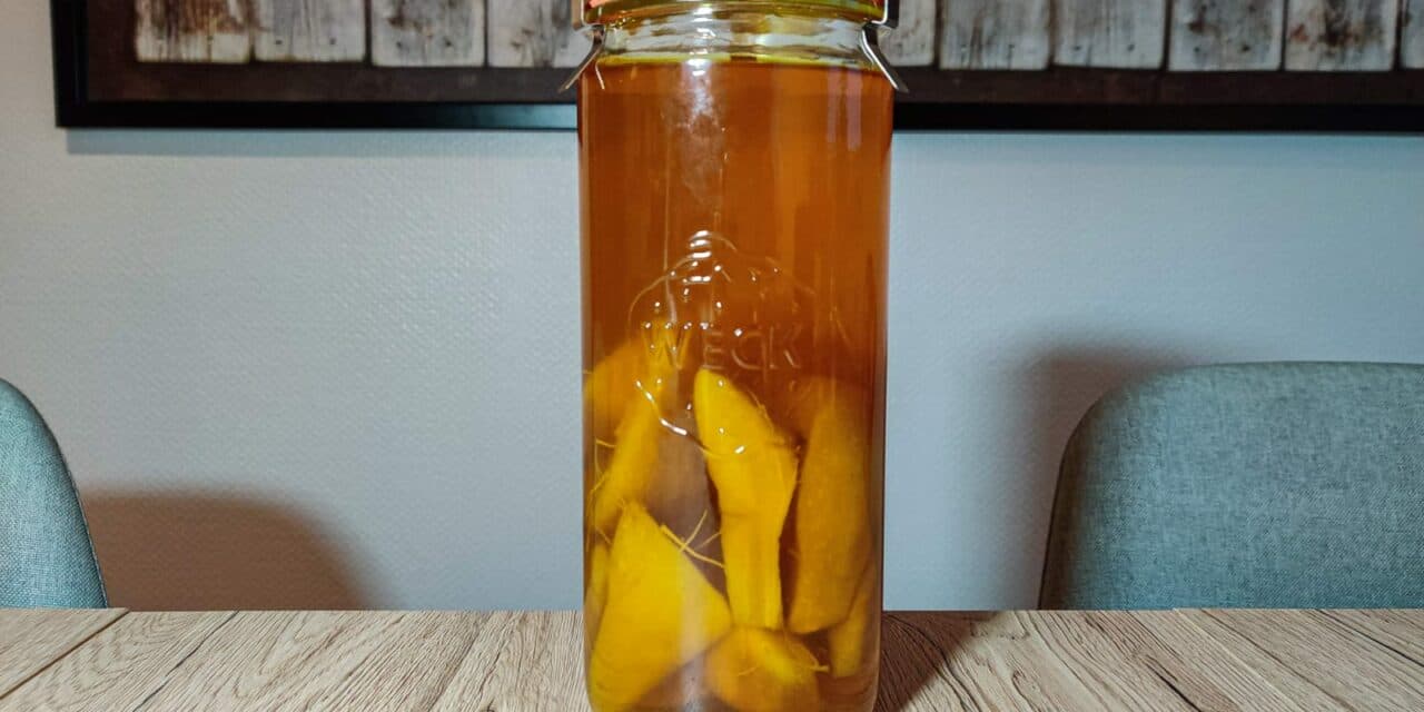 Voici une recette de rhum arrangé facile à faire à base de poire et safran. Vous allez épater vos amis !