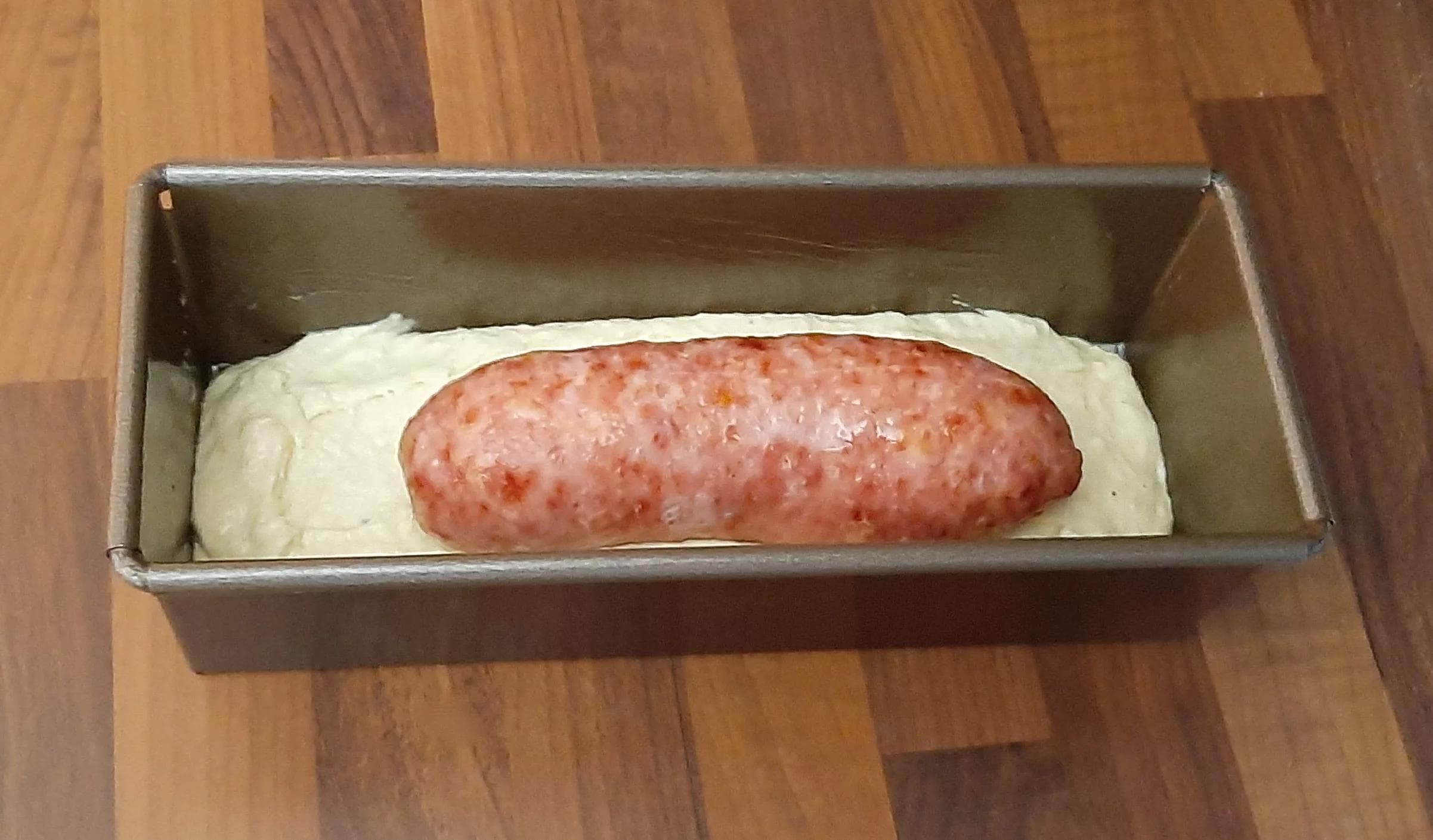 - Compléter avec le reste de pâte pour bien recouvrir la saucisse.
