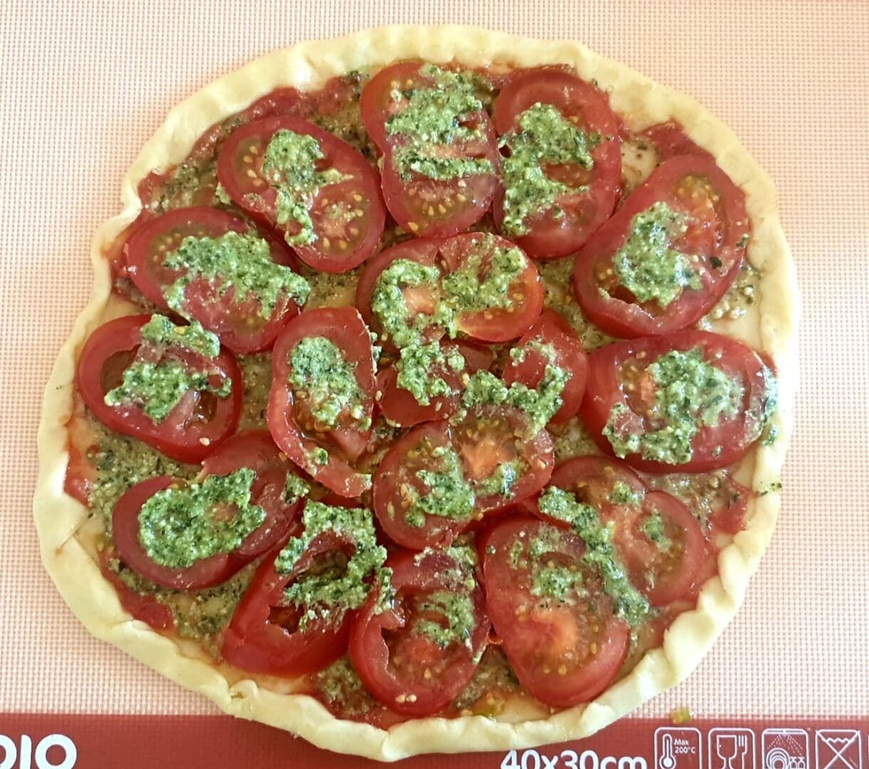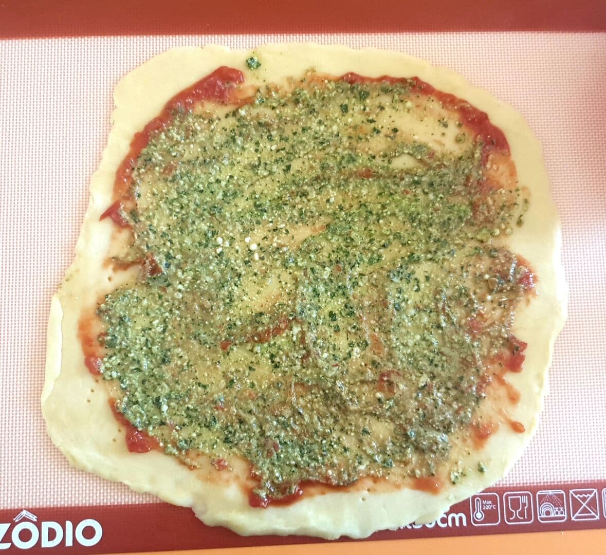 - Ajouter le reste de pesto (et plus si envie) en l'étalant.