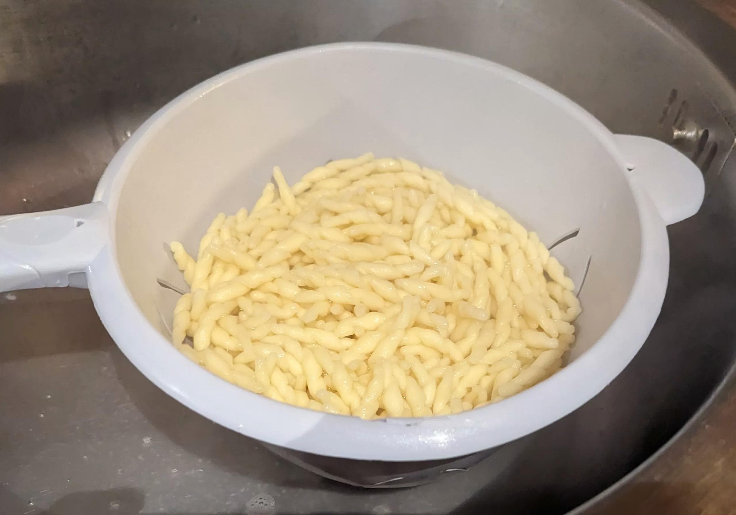 Cette recette de trofie al pesto au basilic maison est facile et rapide à faire.Ces petites pâtes torsadées originaires de Ligurie en Italie sont réputées pour leur forme unique qui permet de retenir parfaitement la sauce, en particulier le délicieux pesto.La préparation demande un certain savoir-faire, mais une fois cuites à la perfection, elles offrent une texture délicieusement al dente, faisant de chaque bouchée une véritable expérience culinaire.