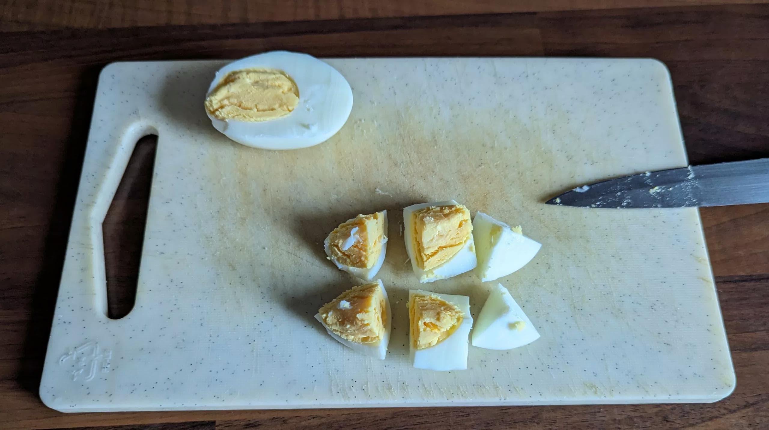 - Sortir les œufs durs et les passer 2 minutes sous l'eau froide. Les écaler ensuite.