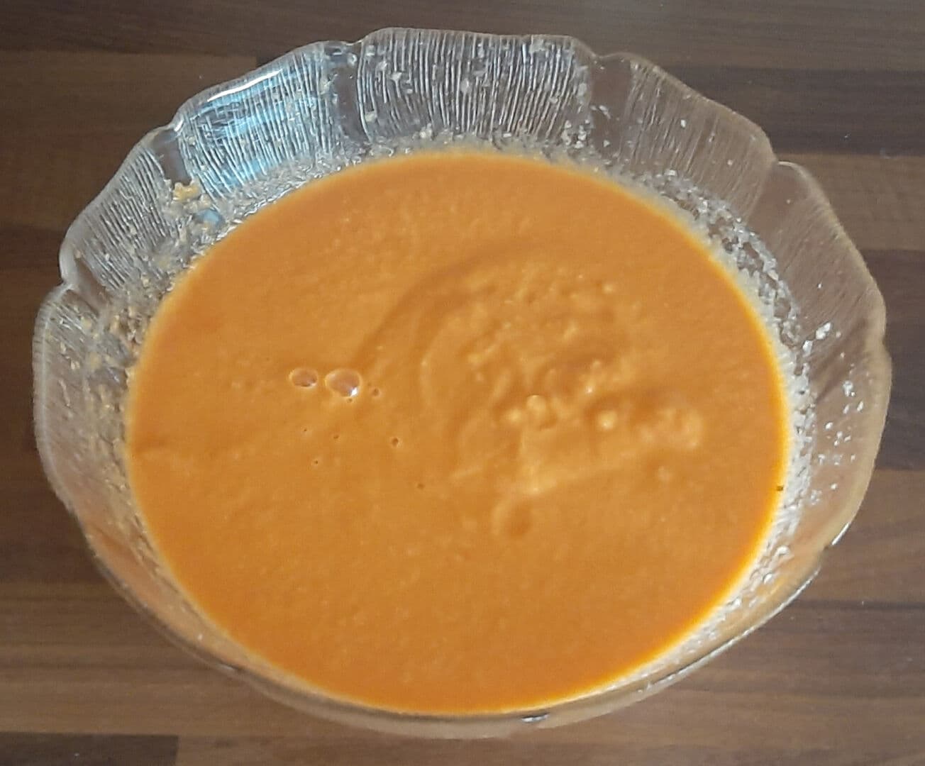 - Mixer le tout. Gouter et ajuster si besoin (avec le restant d'ail, un peu plus de pain, du sel, de l'huile, du vinaigre, du piment). La sauce doit être à votre goût et pas trop liquide.