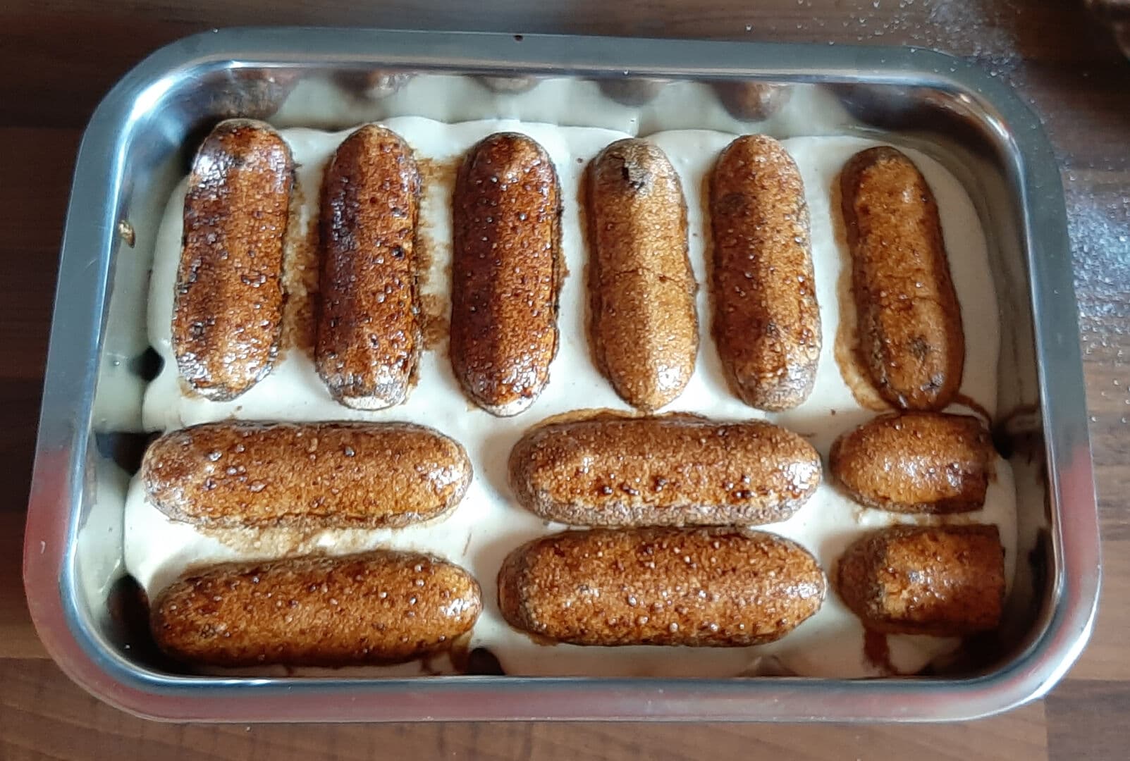 - Déposer une deuxième couche de biscuits à la cuillère après les avoir trempés.