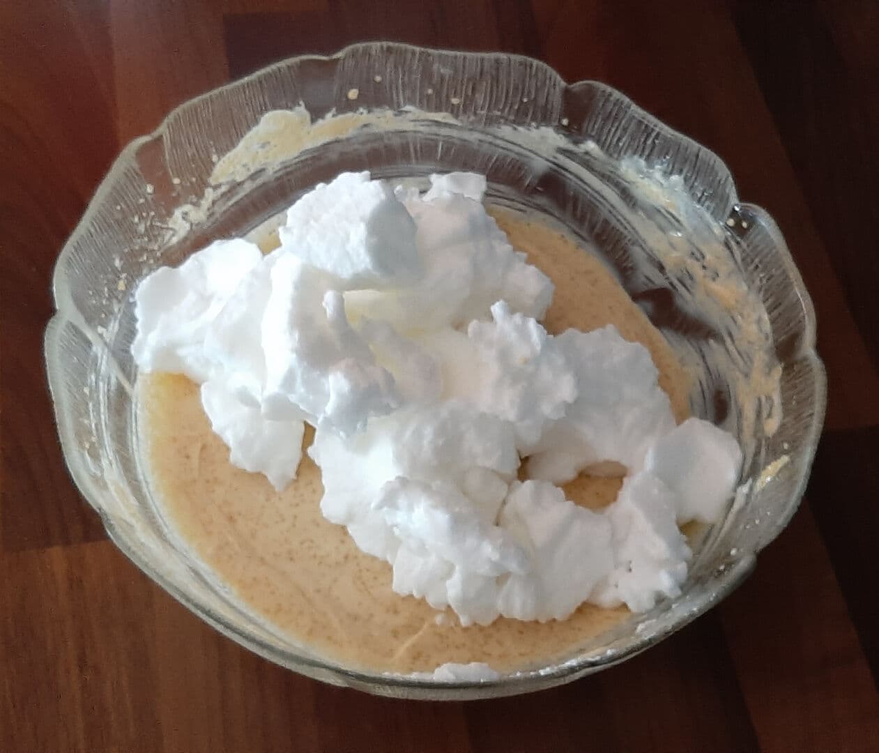 - Sortir la crème du réfrigérateur et ajouter les blancs en neige.