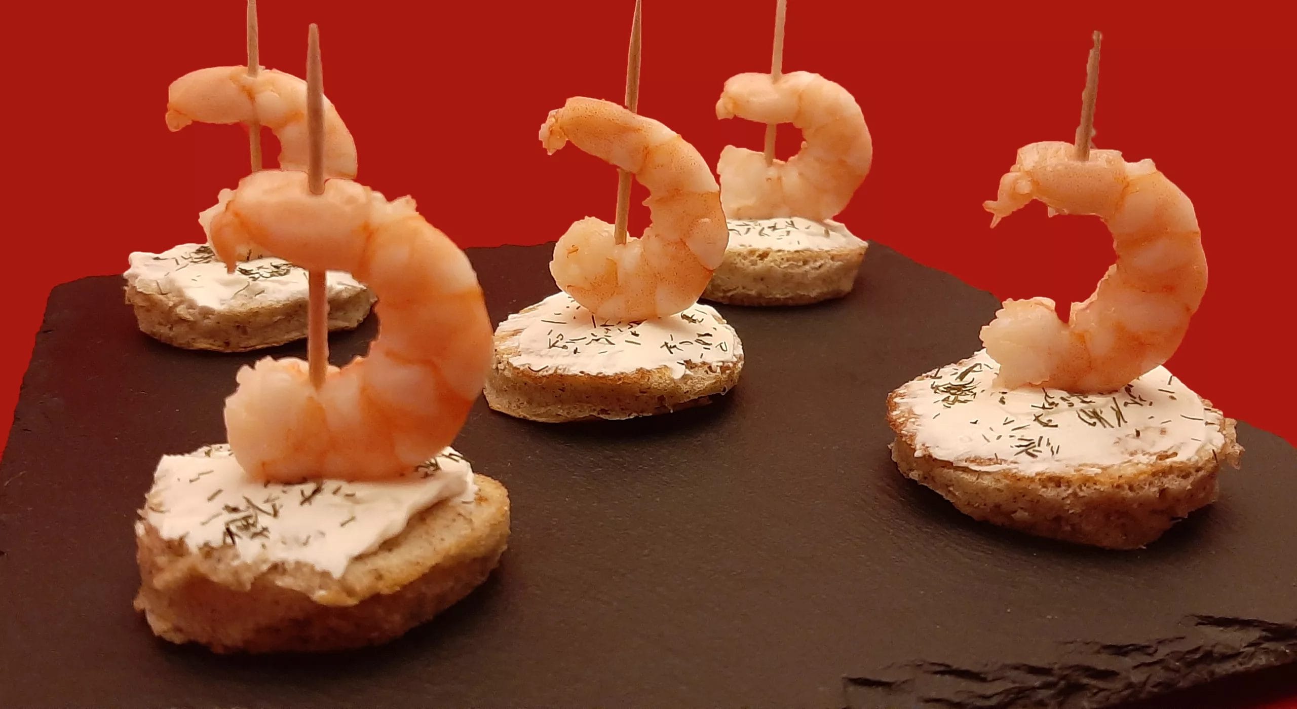 - Vos toasts aux crevettes et fromage frais sont prêts. Bonne dégustation !