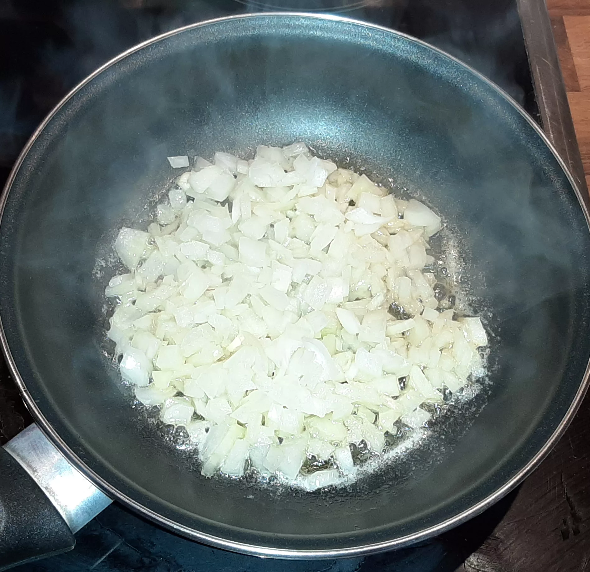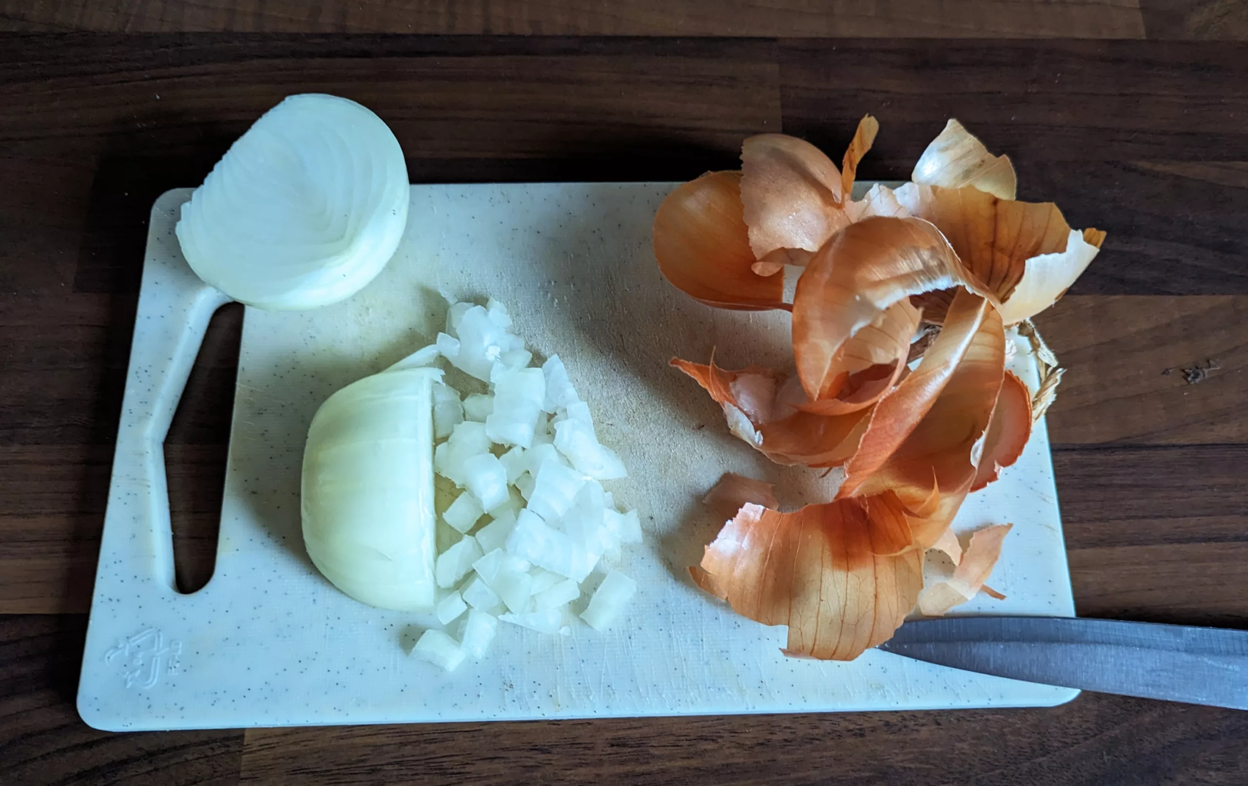 Pendant la cuisson, éplucher le deuxième oignon jaune et le ciseler.