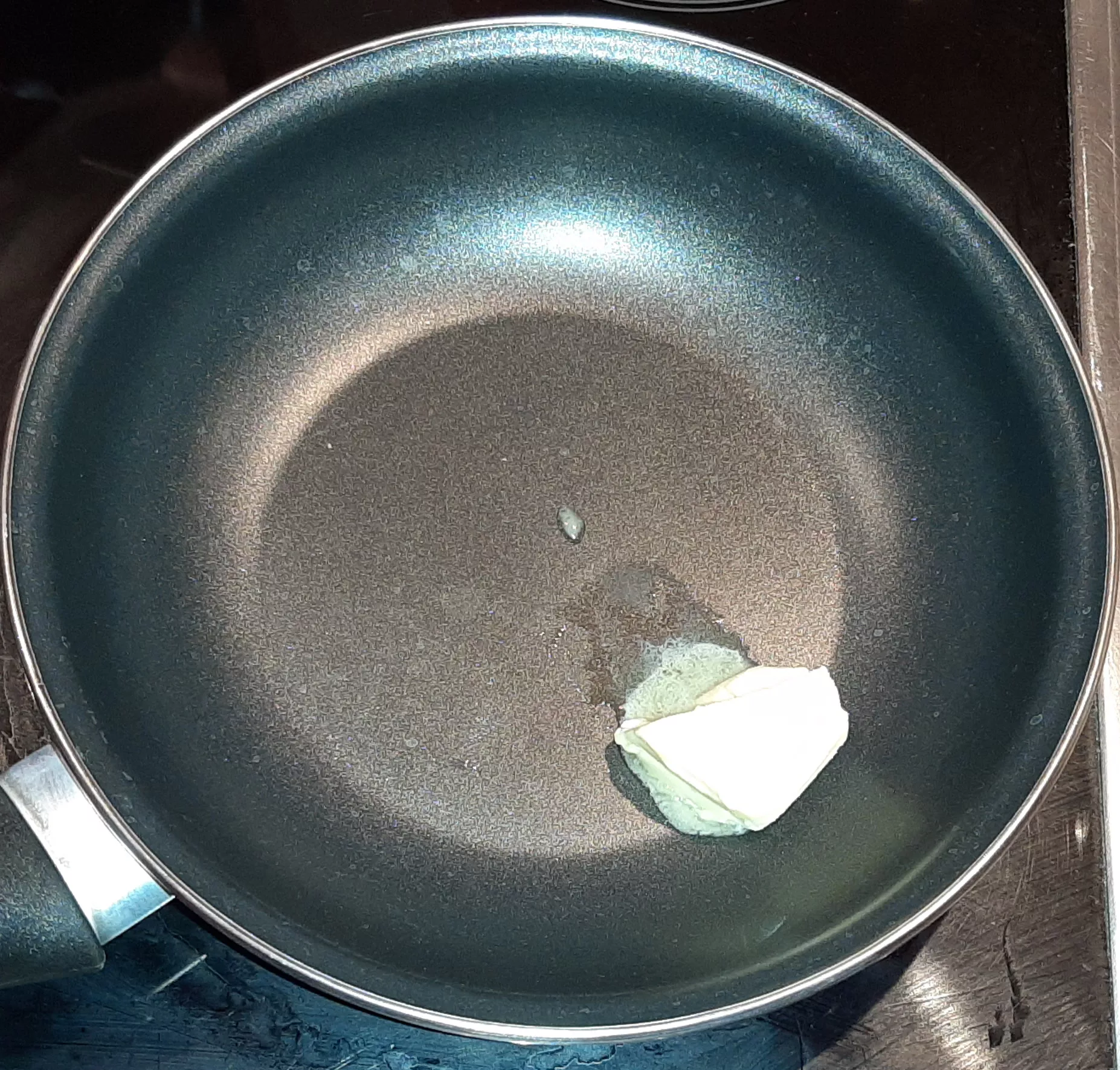 Puis, faire fondre 20 grammes de beure dans une poêle