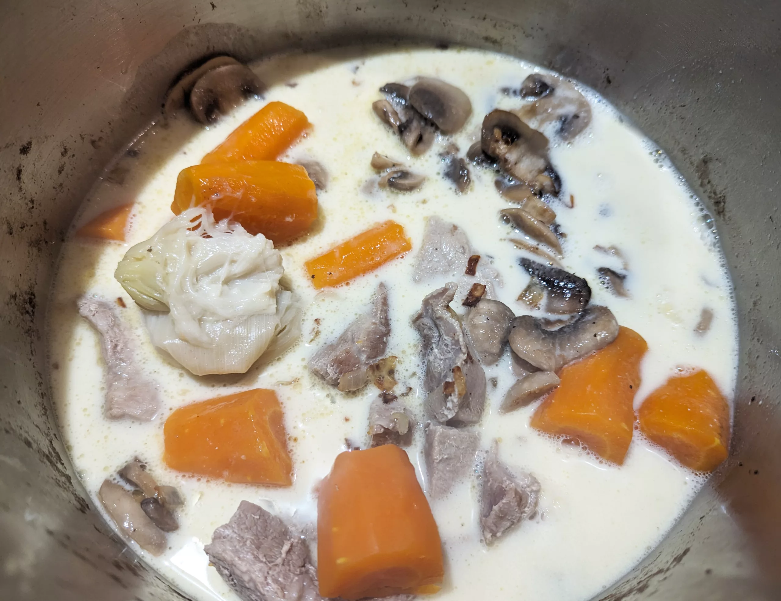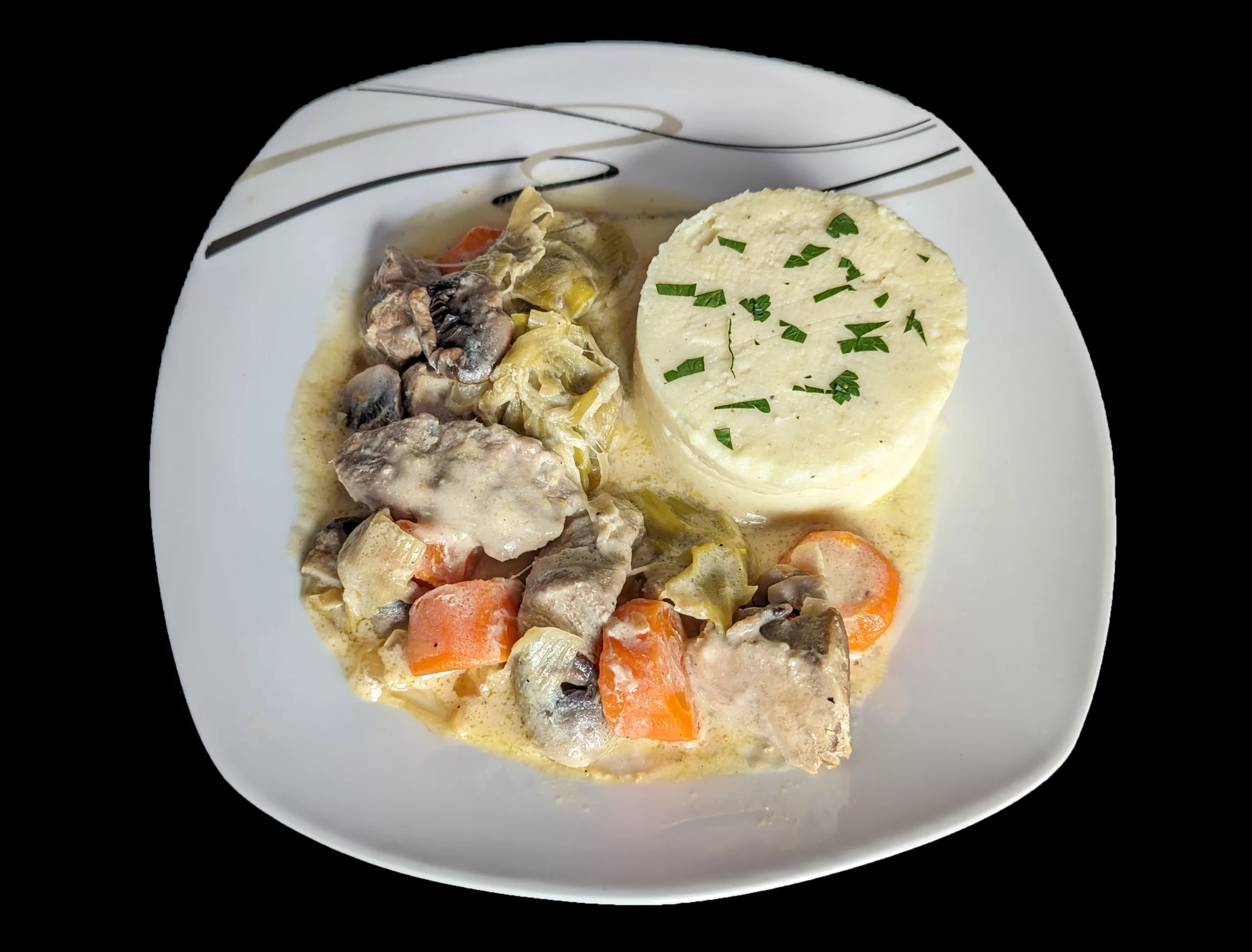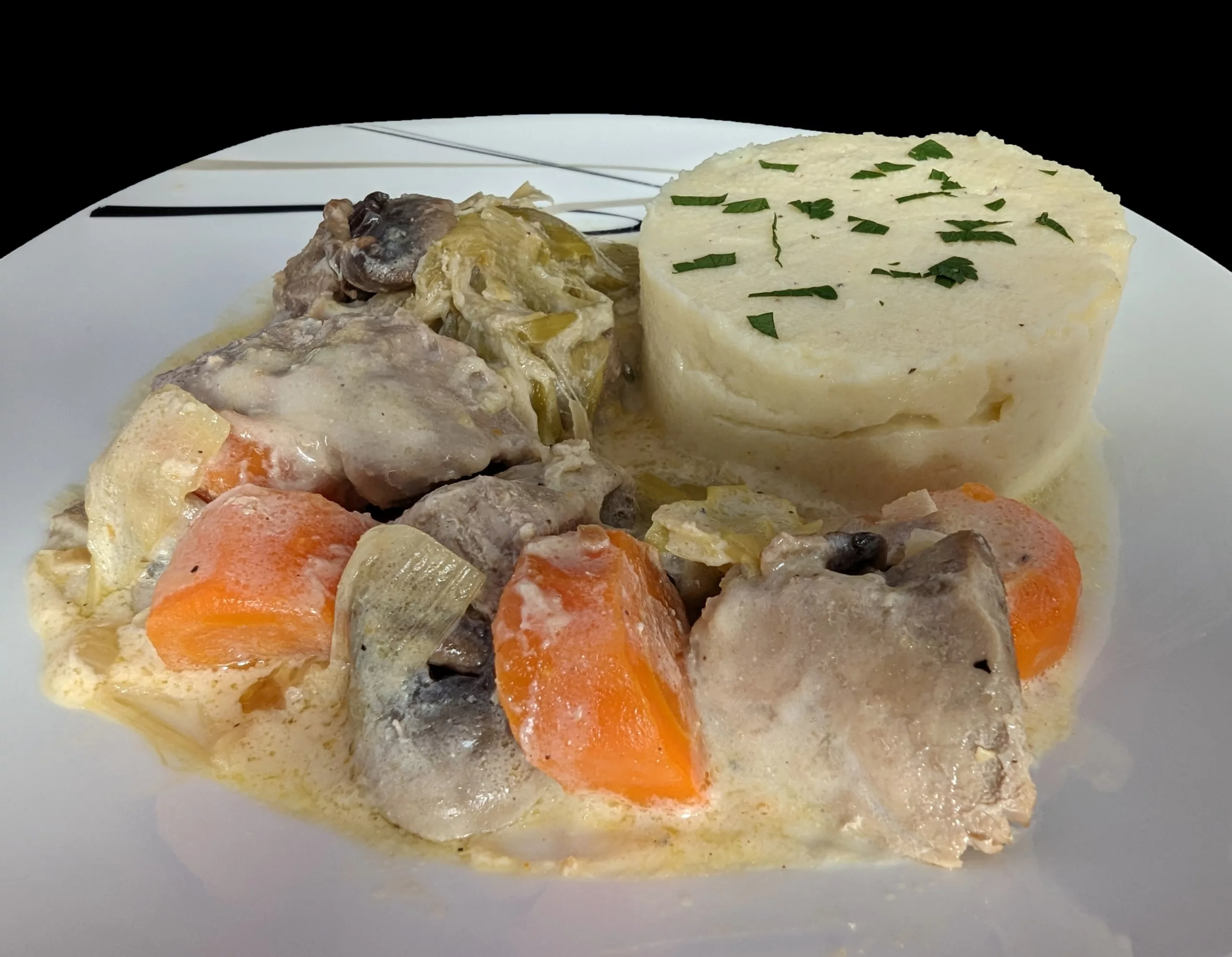 Votre blanquette de veau fondante à la cocotte minute est prête.