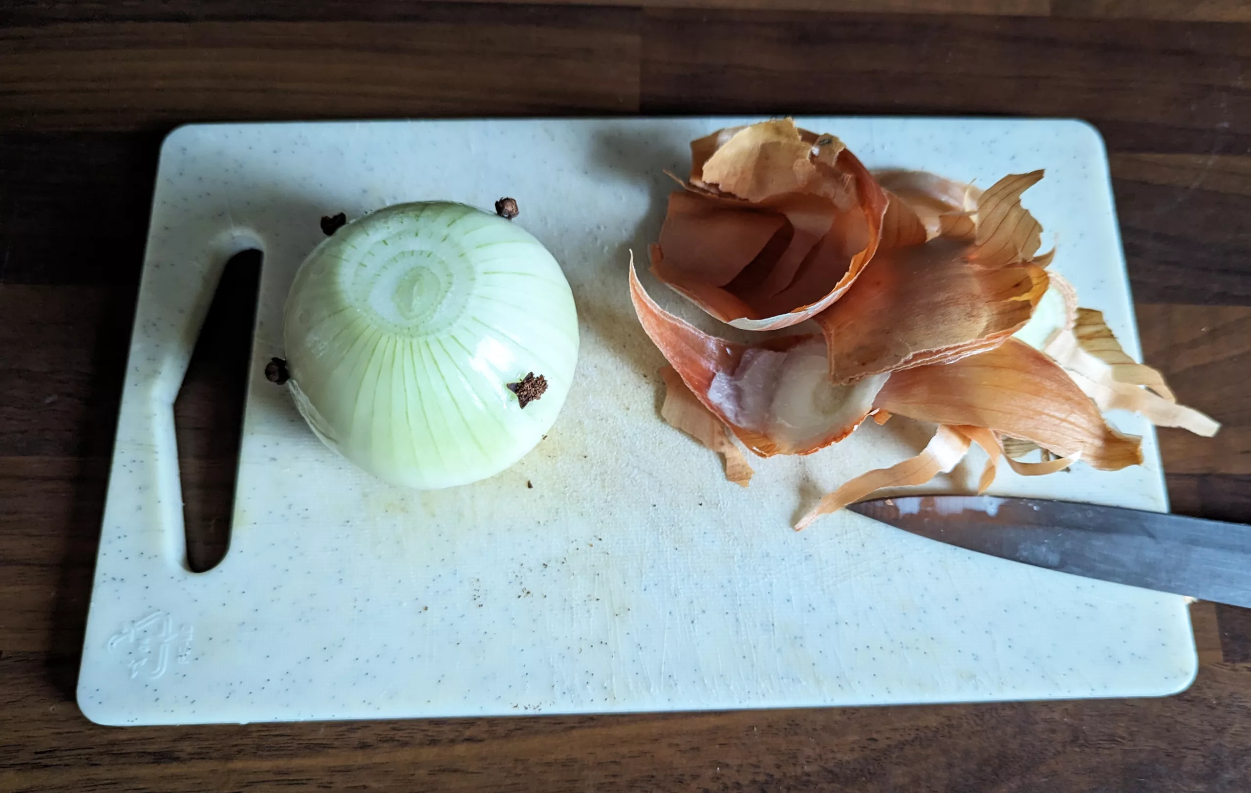 Ensuite, éplucher un oignon jaune et planter dedans les clous de girofle.