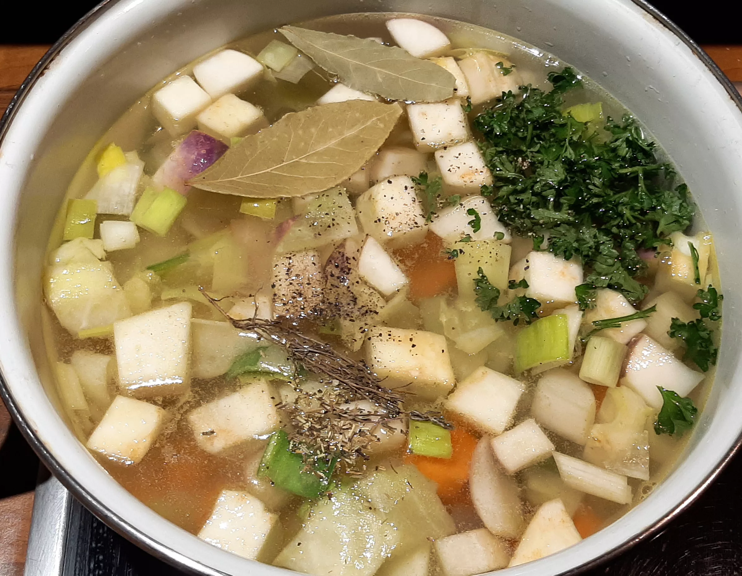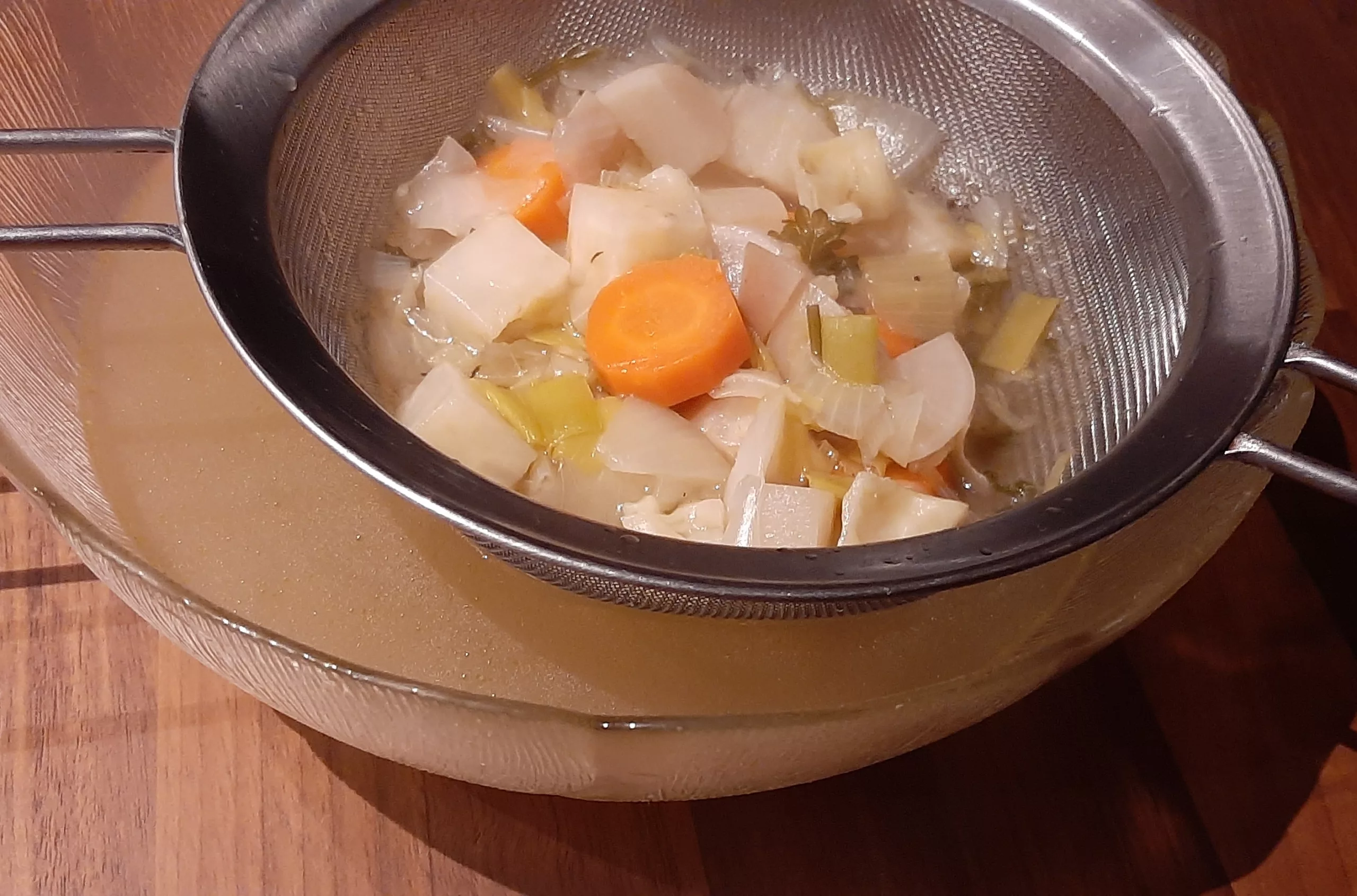 Votre bouillon de légumes maison est prêt. Bonne dégustation.