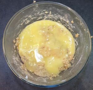 Mélanger et ajouter la compote (elle remplace l'équivalent de 2 œufs et apporte un goût sucré !).