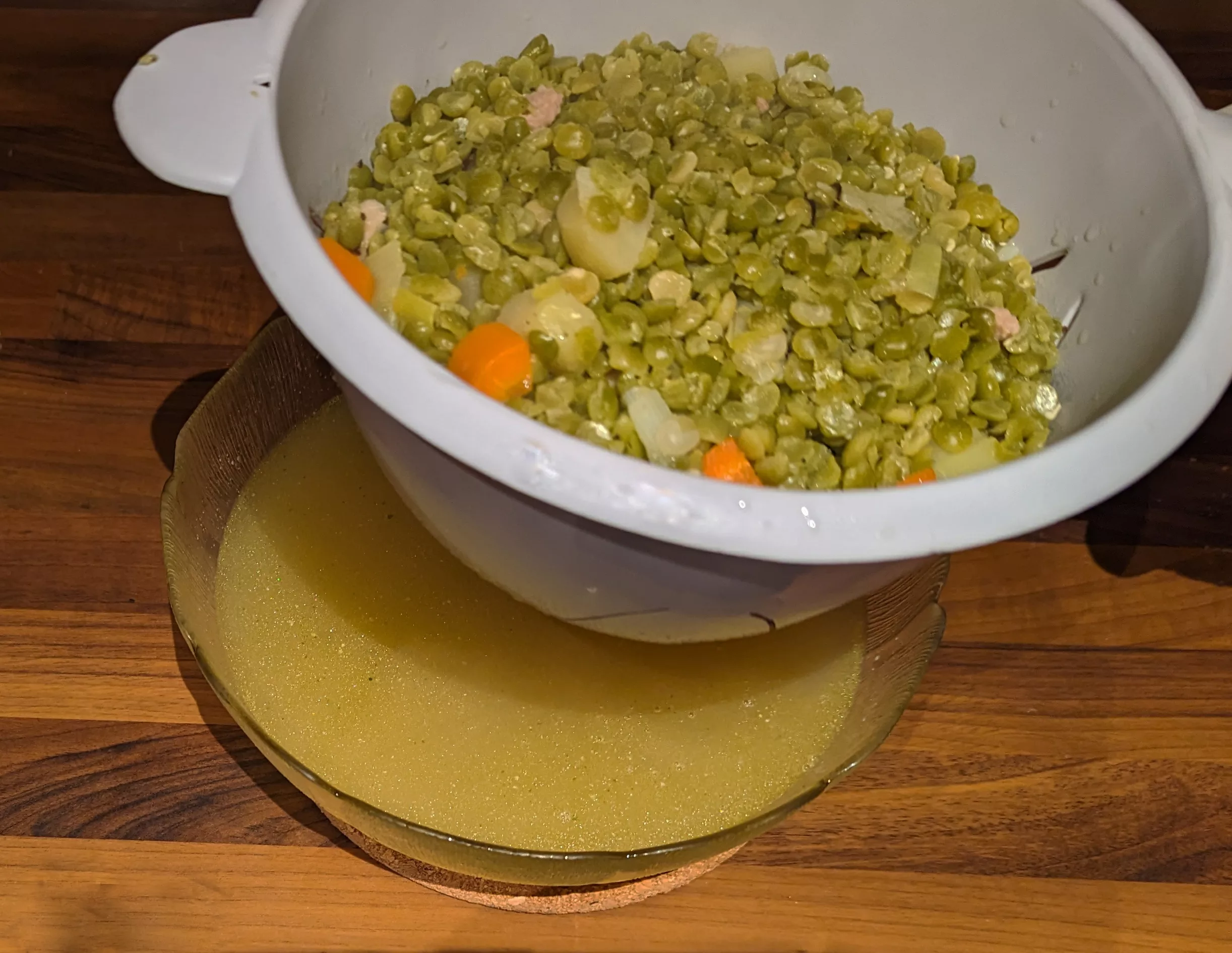 Séparer les ingrédients du bouillon à l'aide d'une passoire.