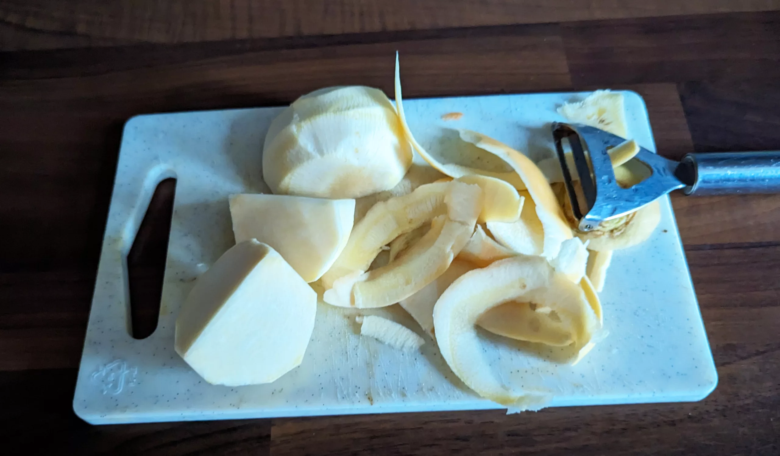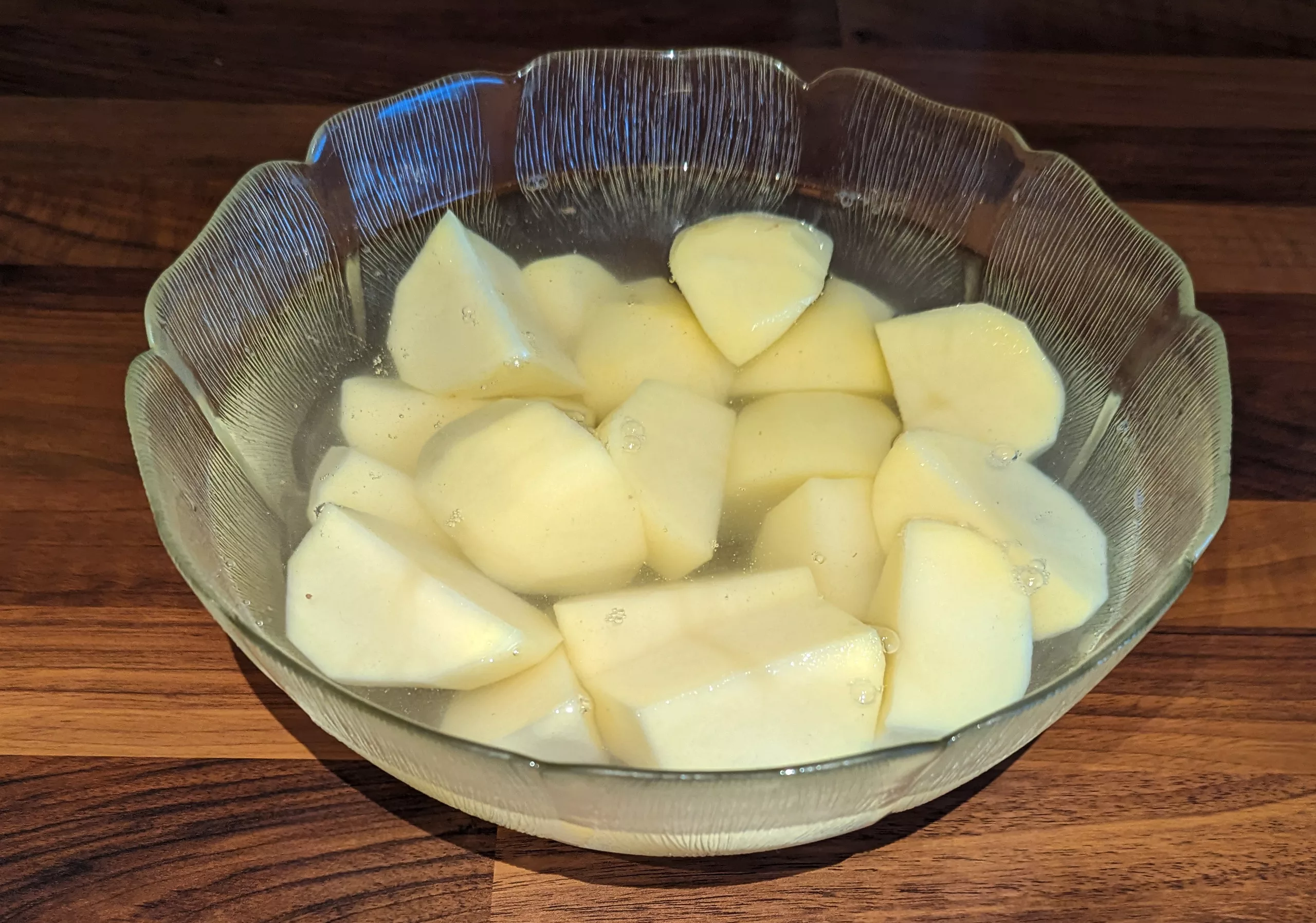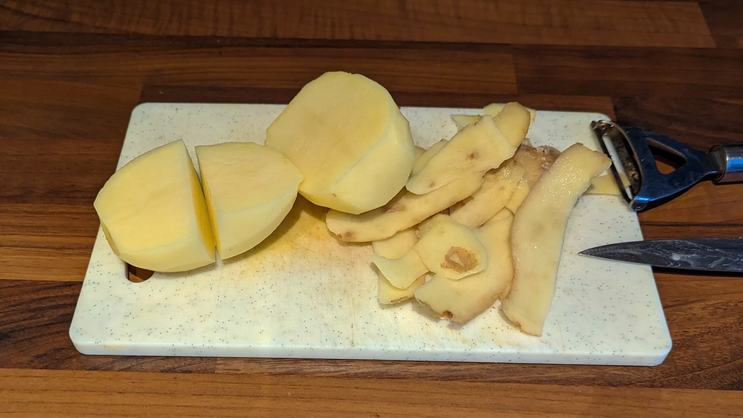 Puis, ôter la peau des pommes de terre et faire de gros quartiers.