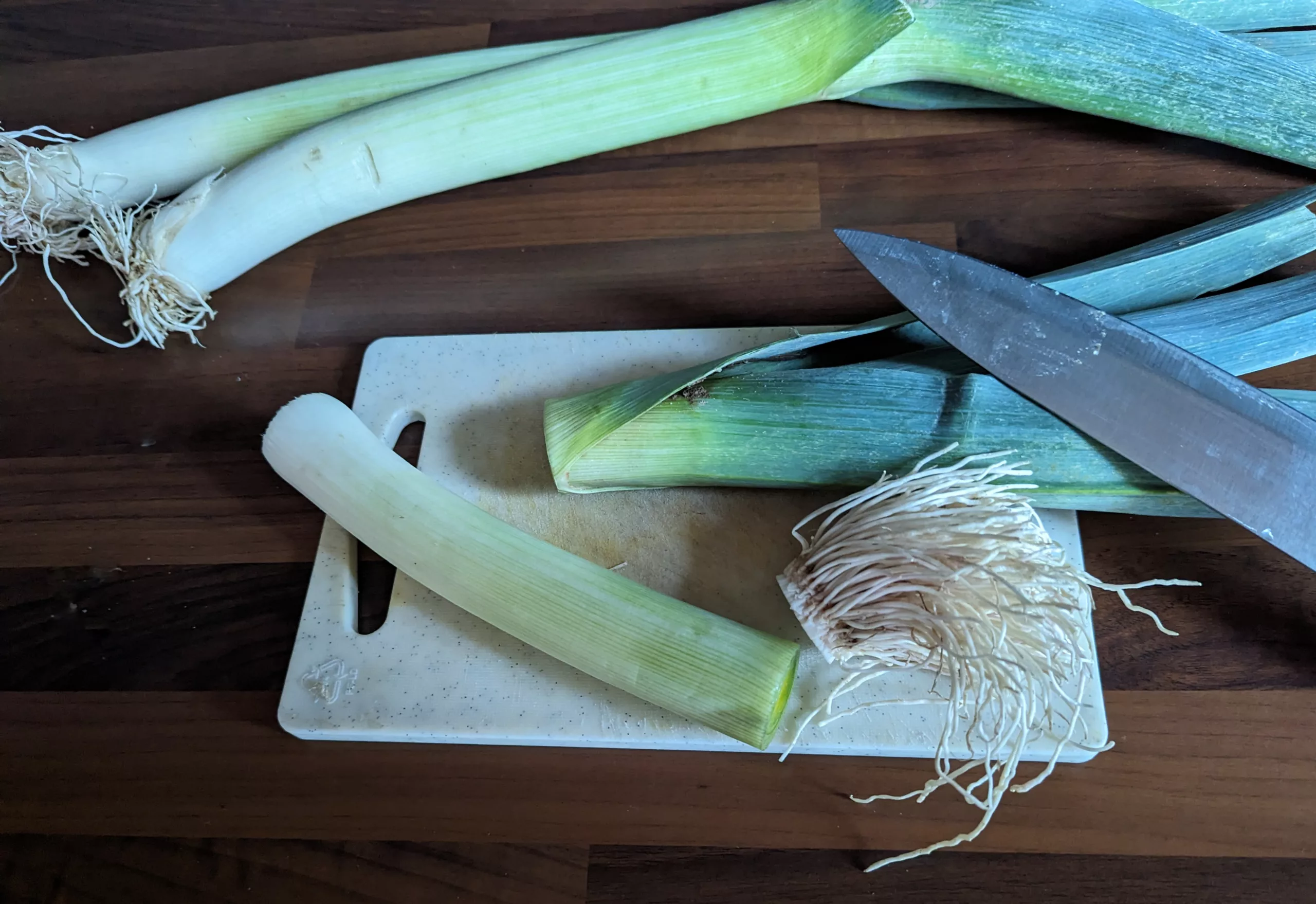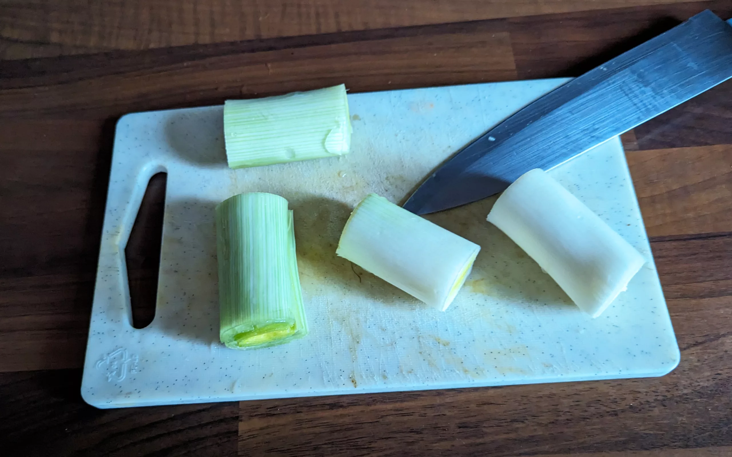 Trancher ensuite les blancs de poireau.