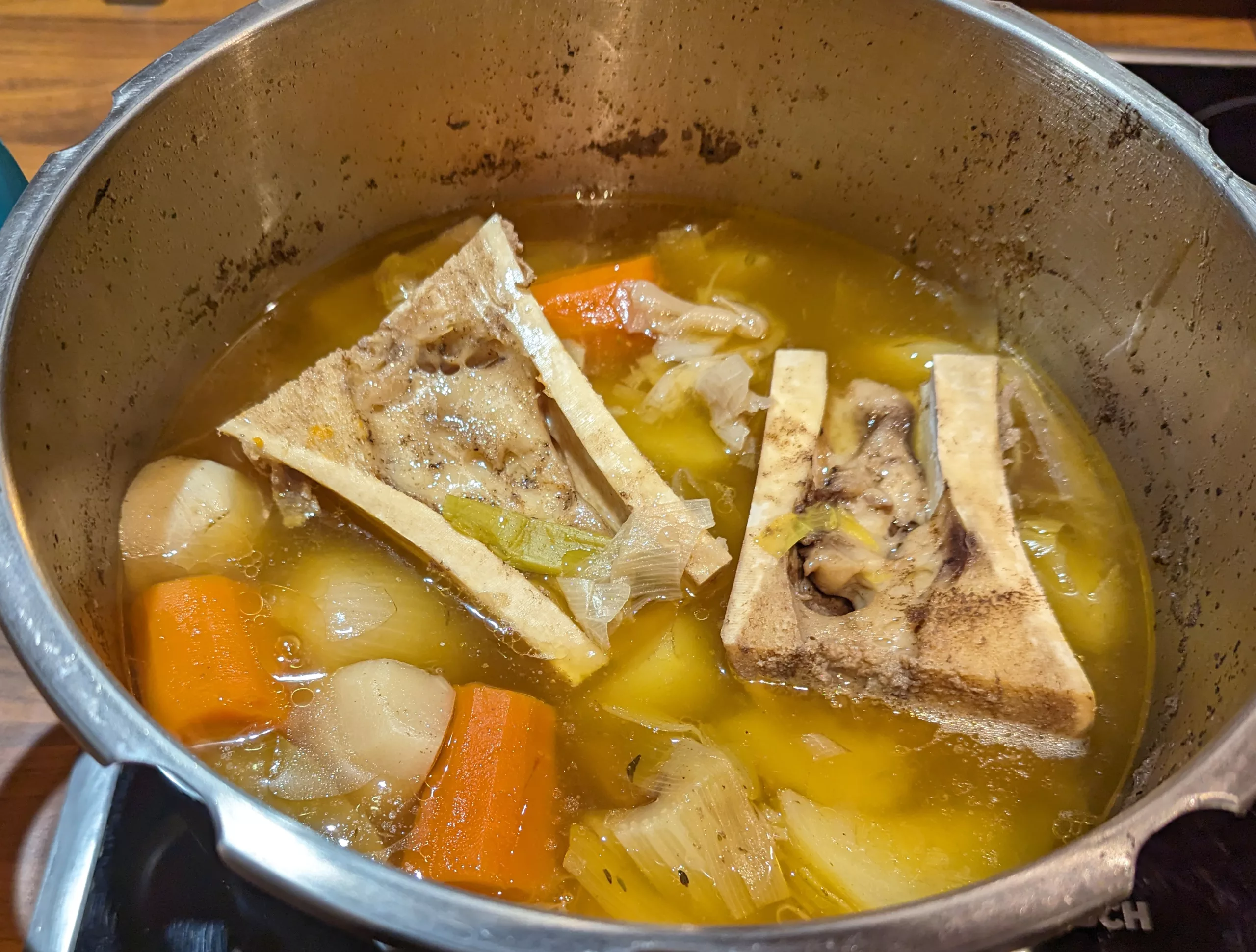 Dépressuriser la cocotte minute et l'ouvrir. Votre pot au feu cocotte minute est prêt.