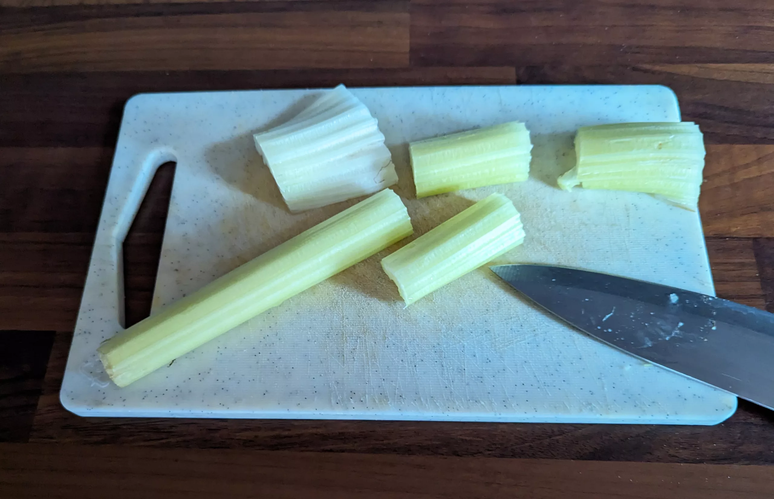 Ensuite, couper la branche de céleri en gros tronçons.