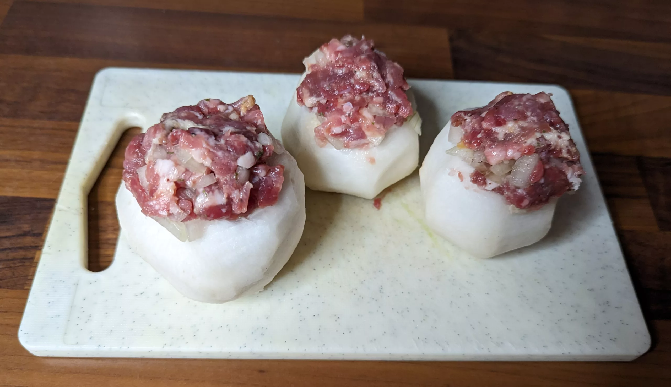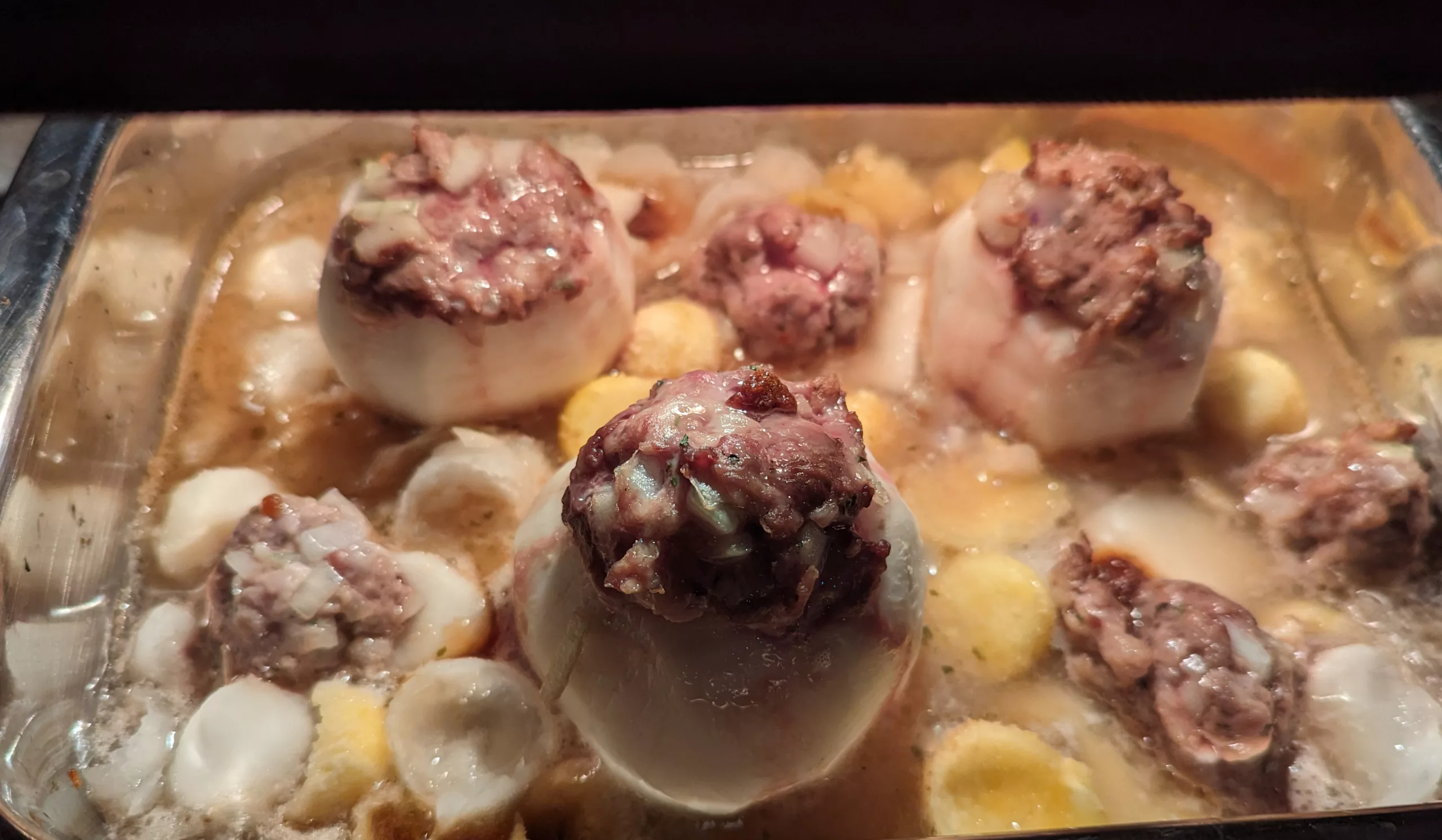 Vos navets farcis et cuits au four sont prêts. A servir de suite accompagnés d'une bonne salade verte.